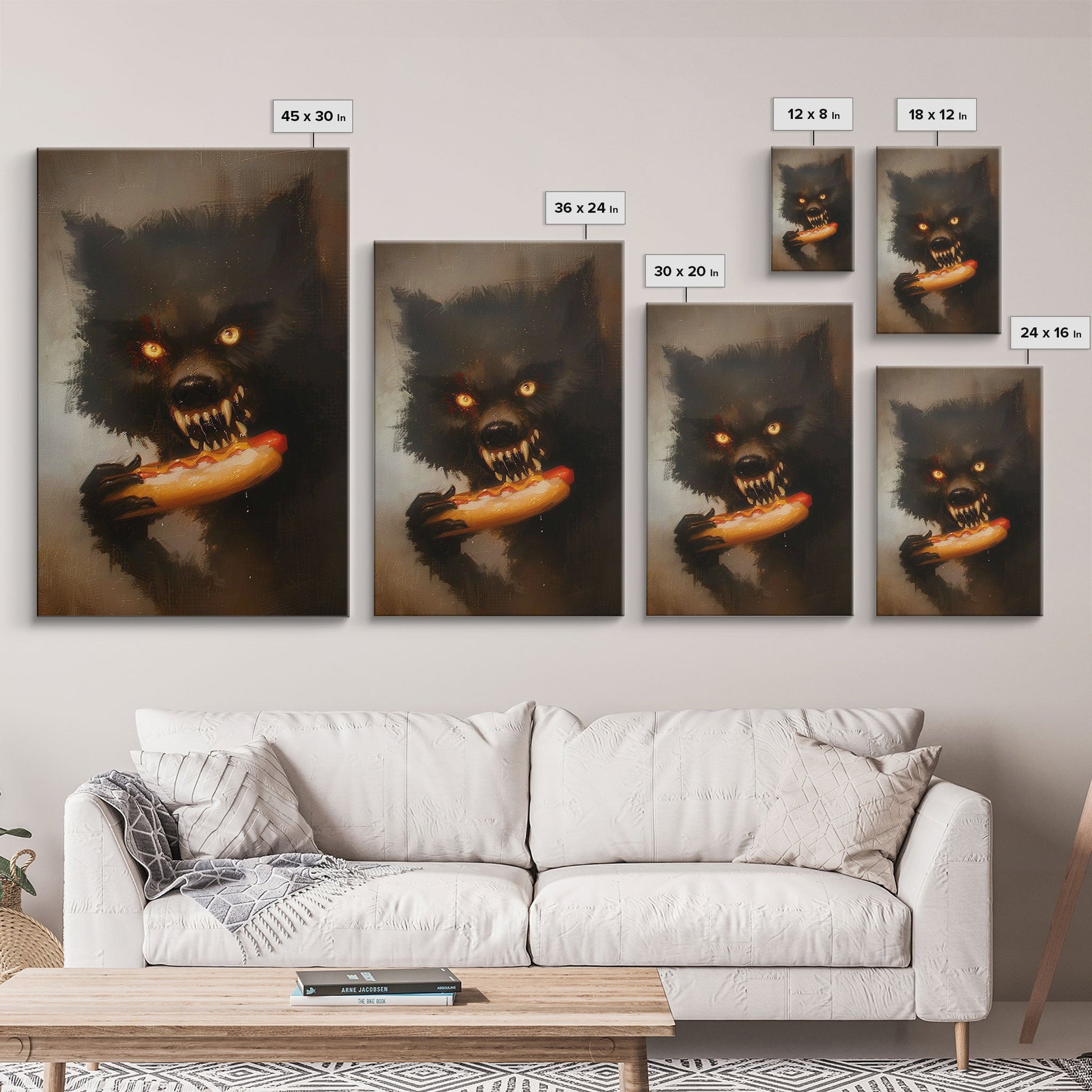 Halloween Werewolf Snarling, Framed Canvas Print, Wall Art, Home Decor, Spooky Art Monster Decor, Halloween Decor, Fantasy Art, Holiday Gift