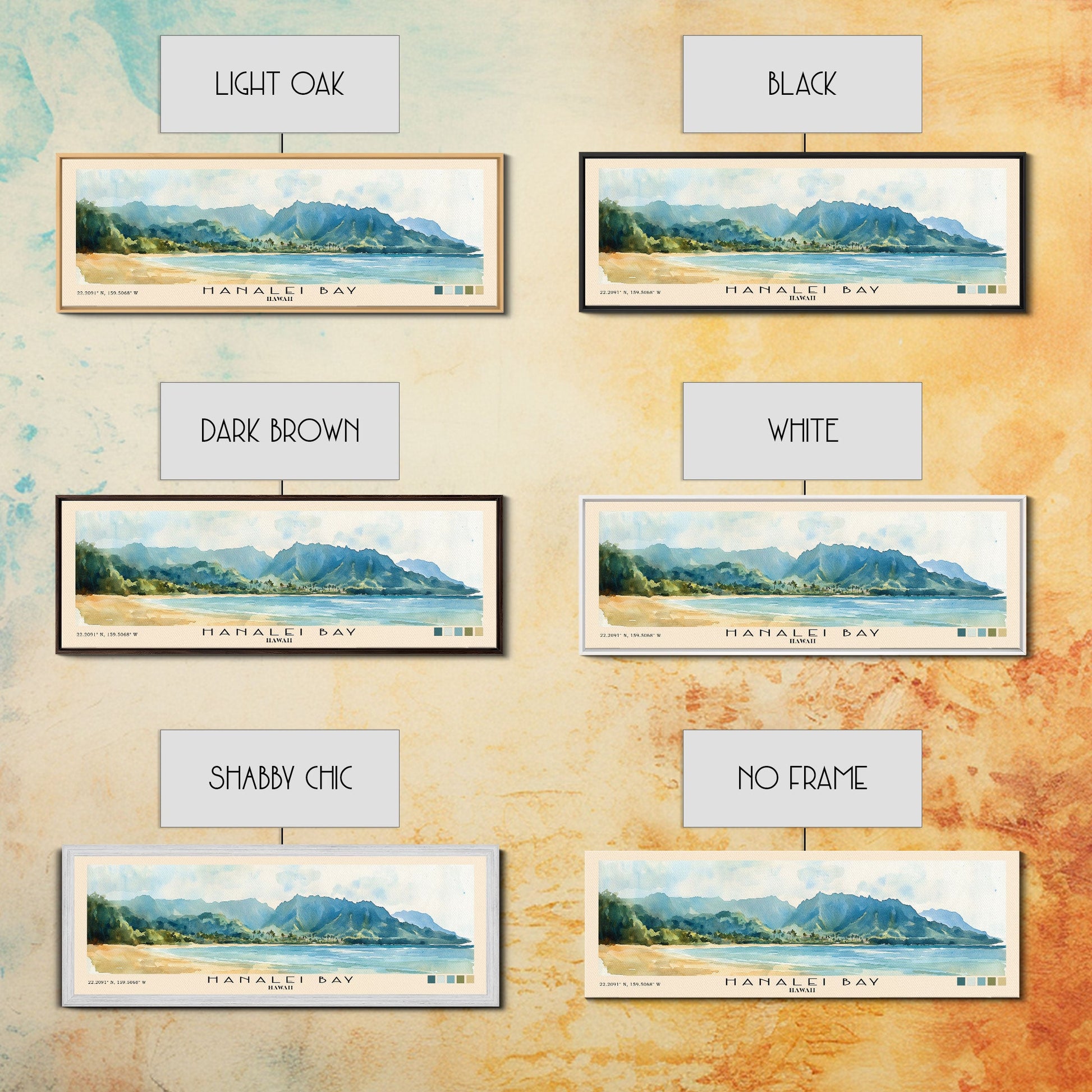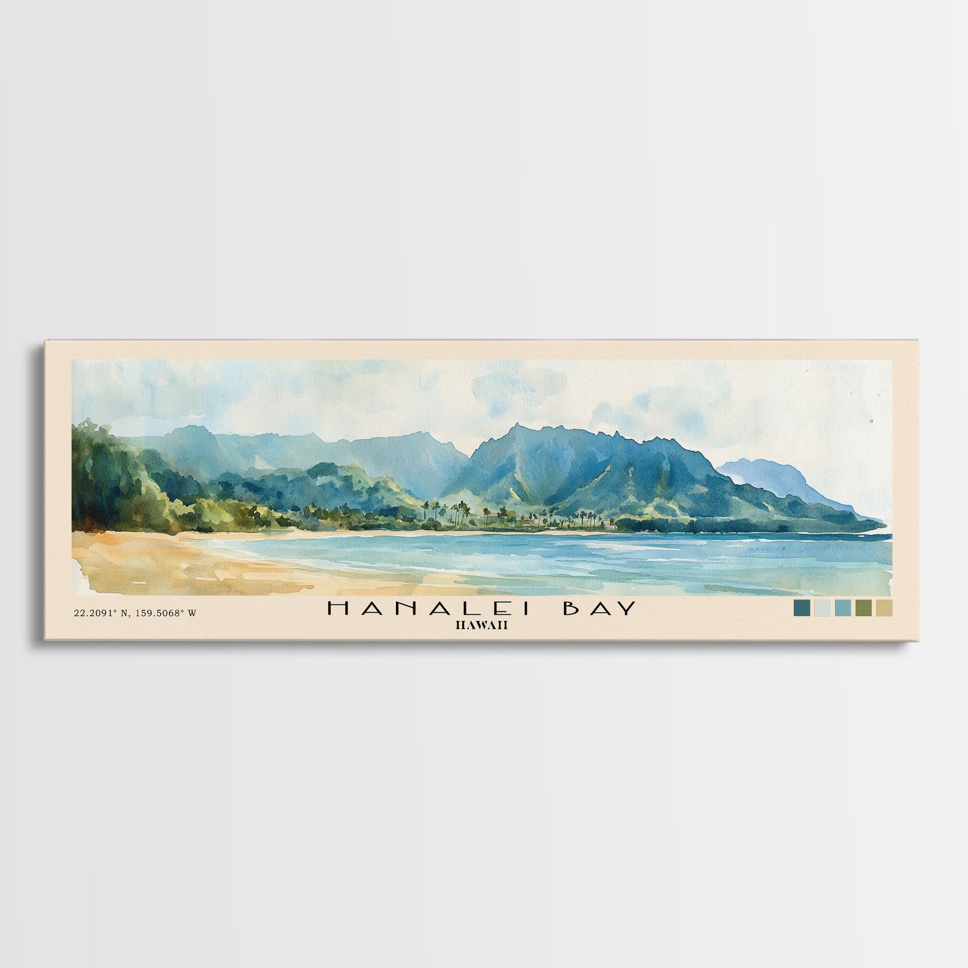 Hanalei Bay, Hawaii Watercolor Beach Print, Vacation Gift, Hawaii Wall Art, Framed Canvas Print, Framed Beach Painting