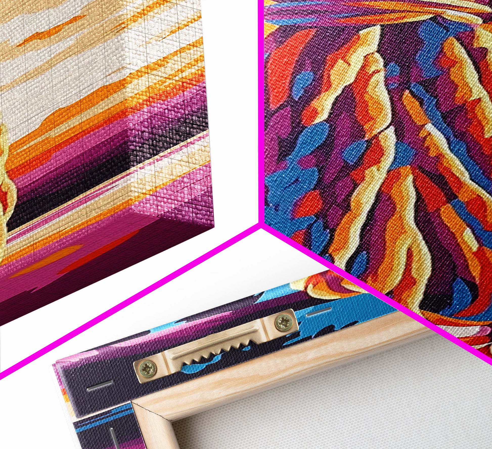 Hello and thank you for taking the time to view our modern high quality giclée artwork! We offer both posters and stretched canvas prints. Our posters are printed on Ultra Matte 60 lb / 230 GSM high quality photo paper, with a thickness of 10 mil. Our canvases are printed on museum grade 350 GSM canvas material with ECO friendly archival grade ink, then hand stretched and stapled over premium, FSC certified and shrink resistant frames. Designed and built to last a lifetime.