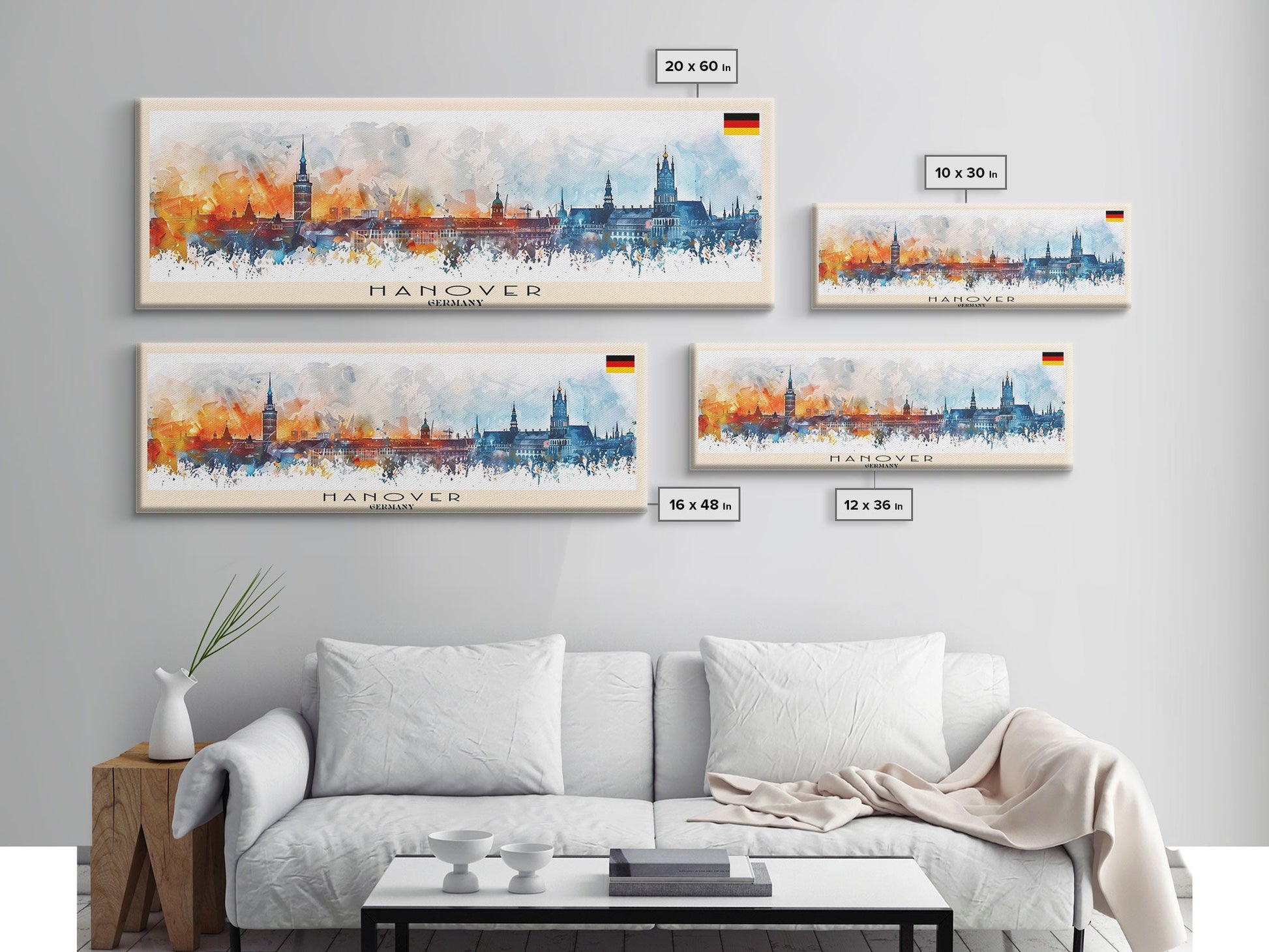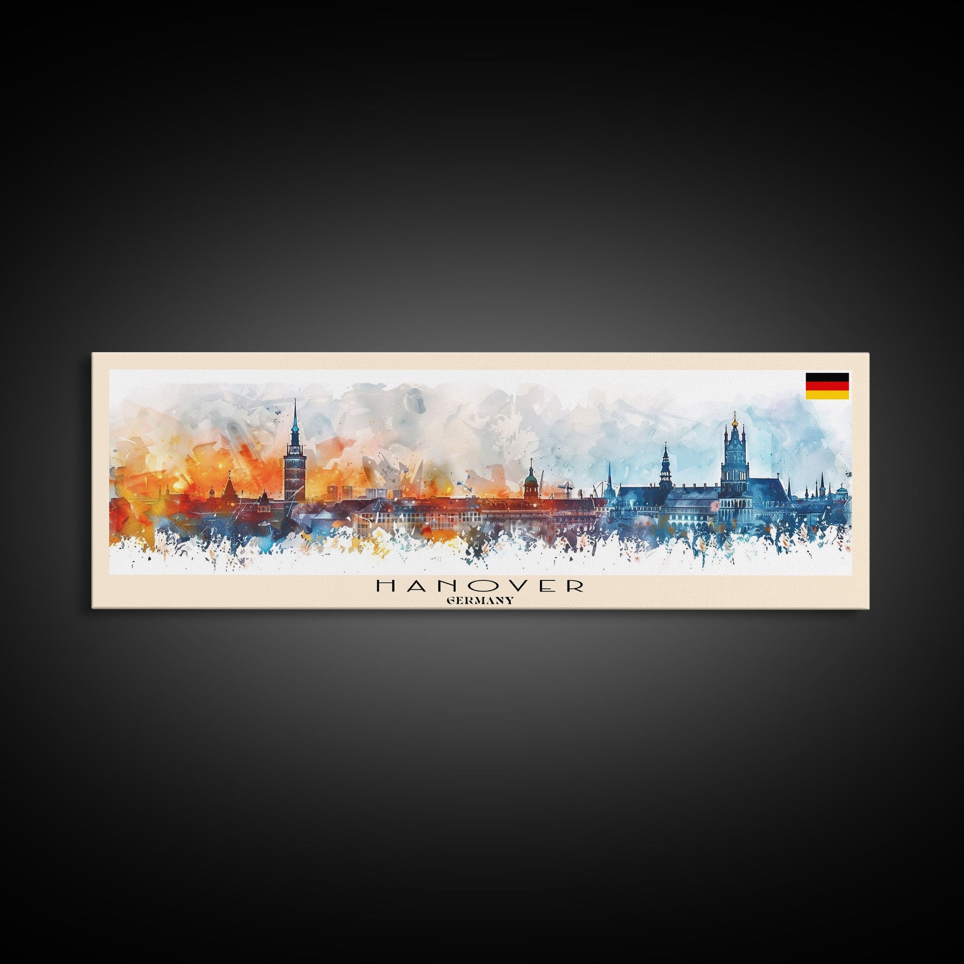 Hanover Germany Panoramic Travel Poster, Framed Canvas Print or Metal Wall Art, Travel Art, Home Decor, Panoramic Painting, Midcentury Art