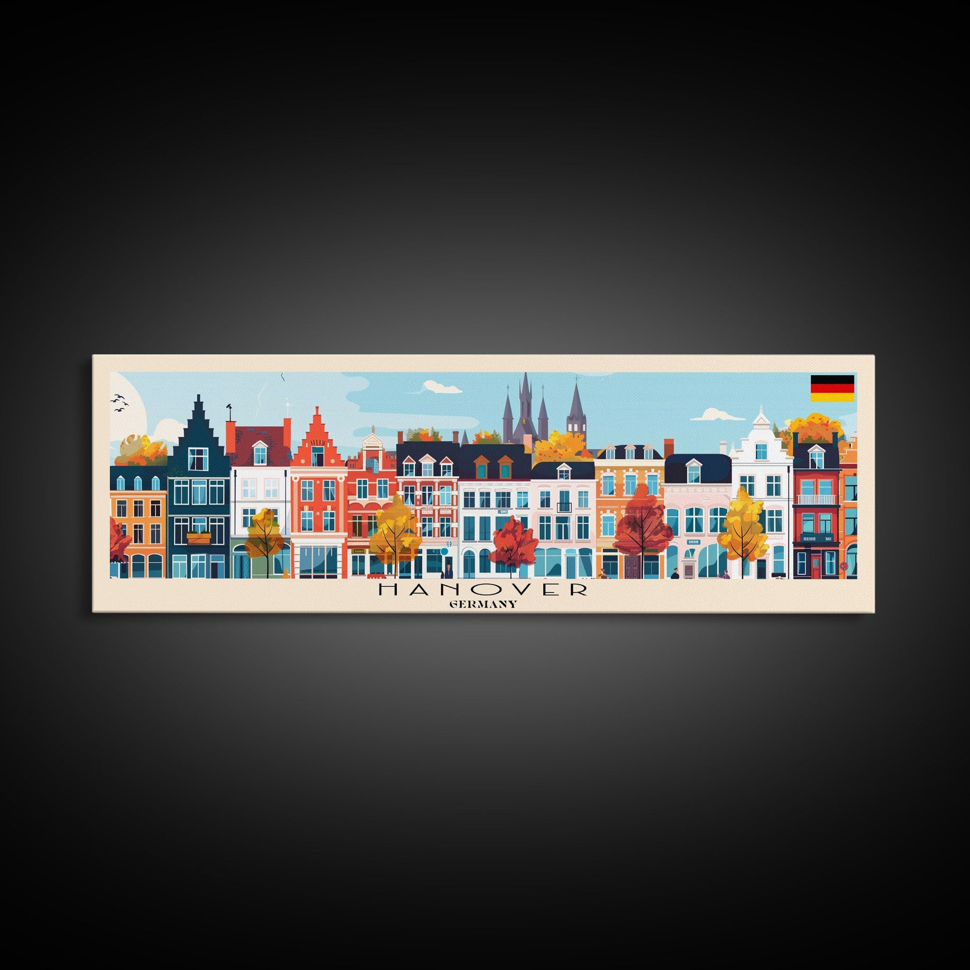 Hanover Germany Panoramic Travel Poster, Framed Canvas Print or Metal Wall Art, Travel Art, Home Decor, Panoramic Painting, Midcentury Art