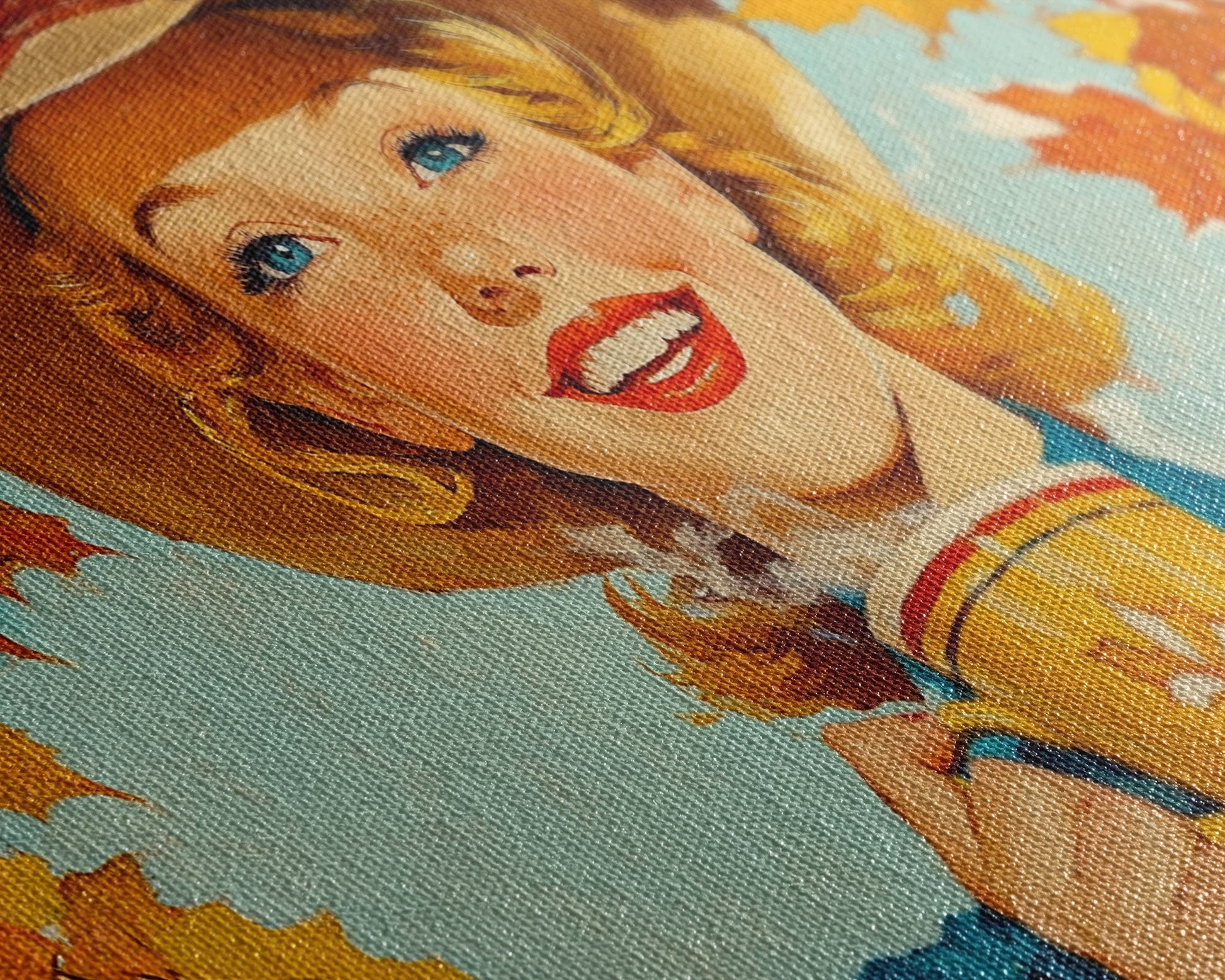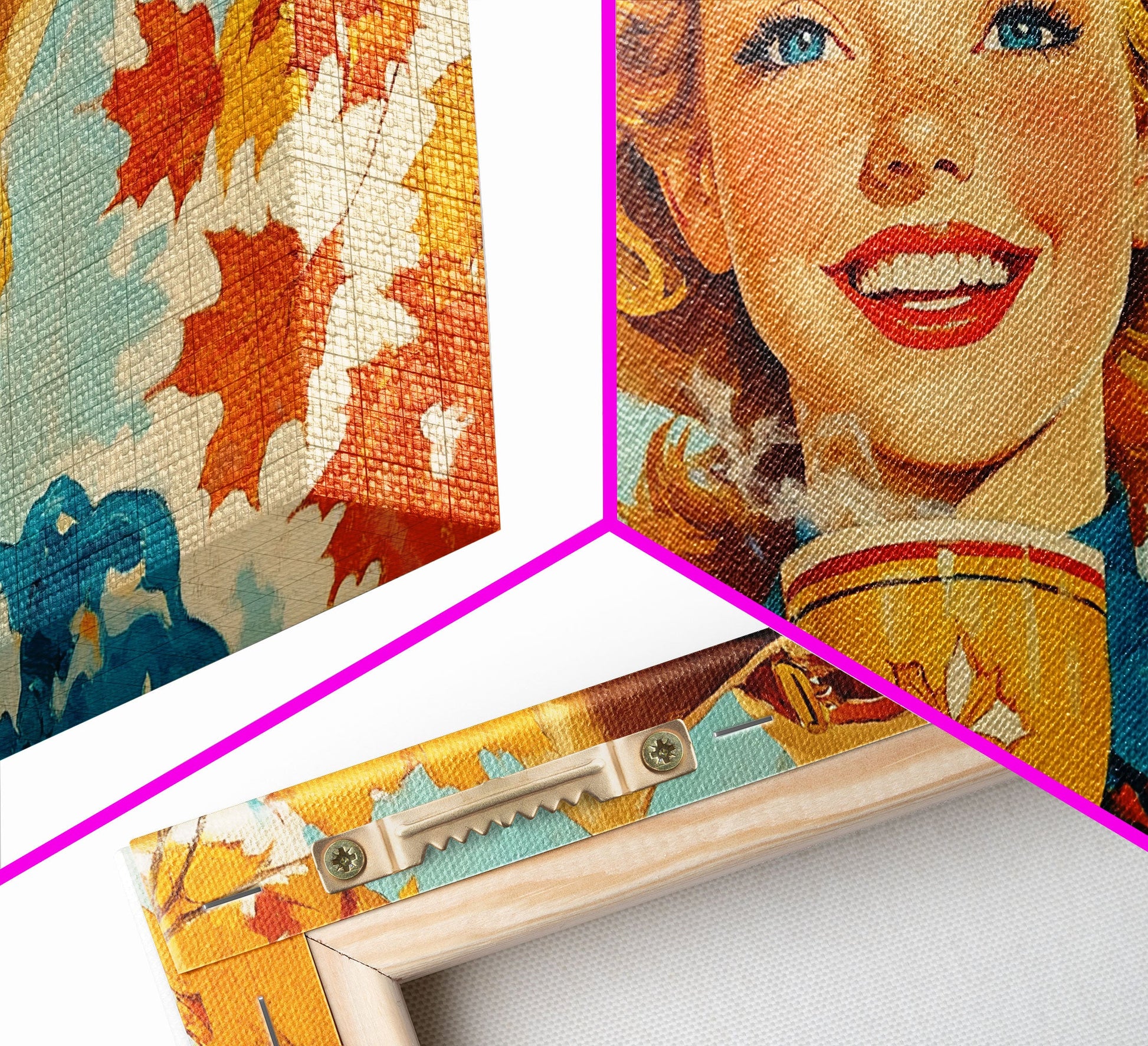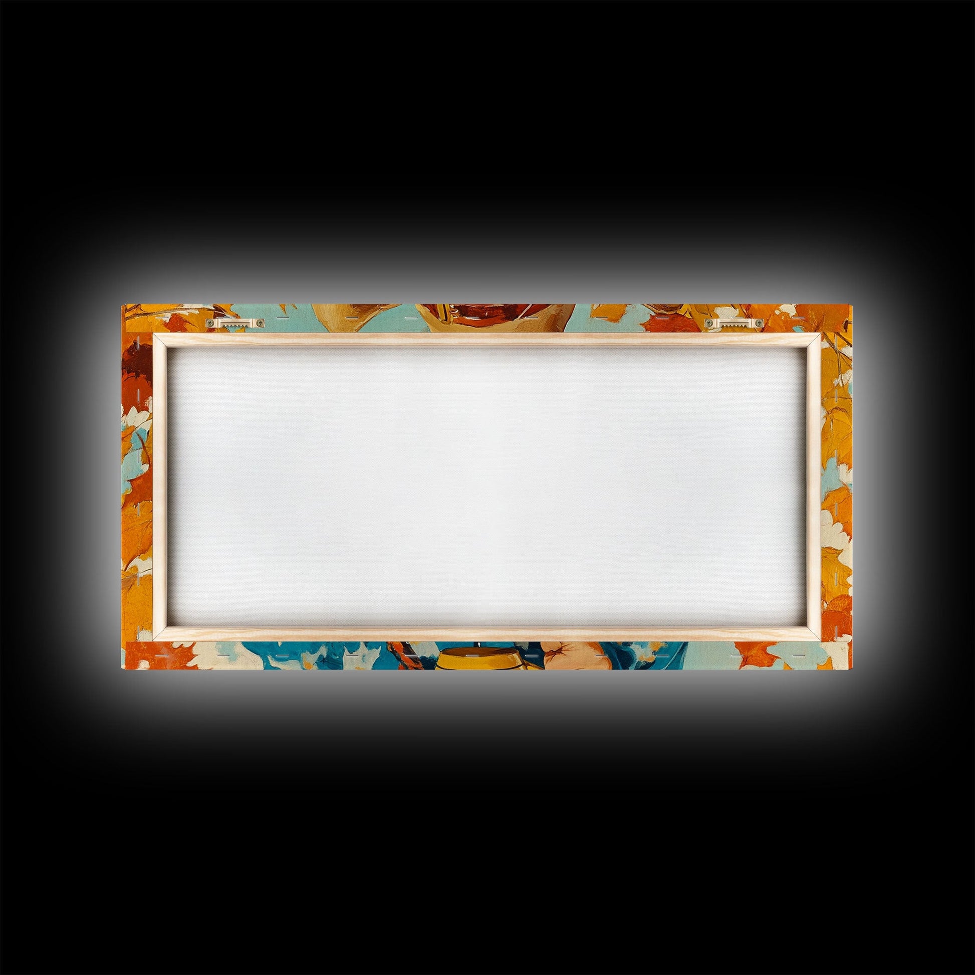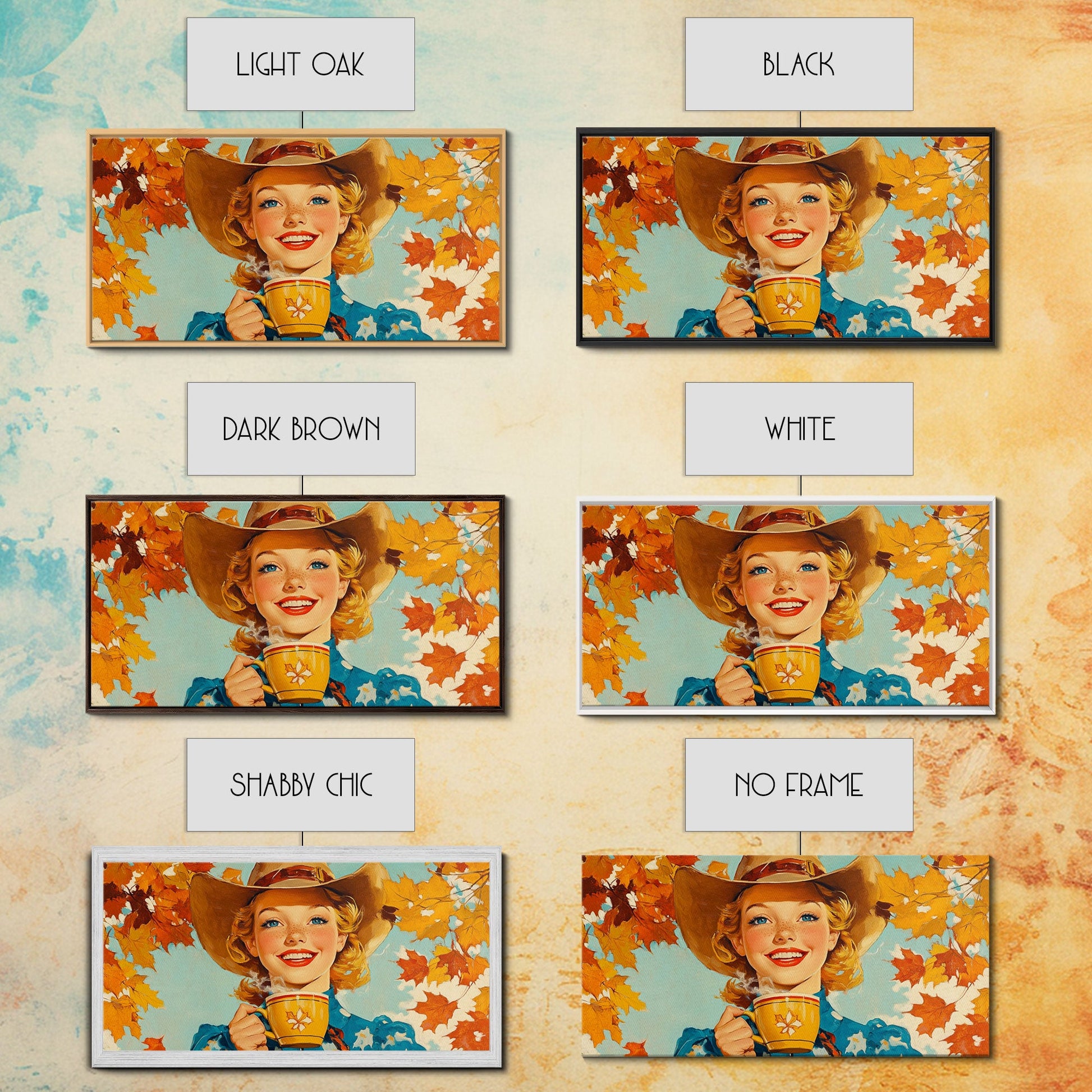 Happy Cowgirl Enjoying Hot Cocoa, Framed Canvas Print, Cute Fall Decor, Rustic Farmhouse Wall Art, Retro Style Trendy Autumn Decor