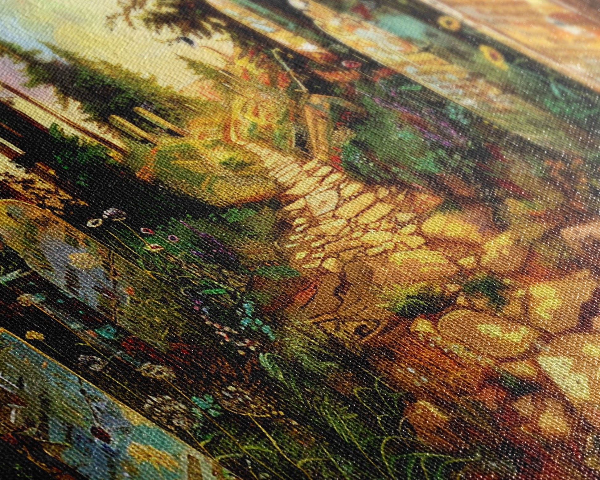 Most of our canvases are made in the USA, with the exception of canvases ordered with the light oak unstained frames, and any large canvases (24x48, 30x60, 16x48 and 20x60) ordered WITH a frame. These are temporarily made in and shipped from Europe, while we try to find a more consistent supplier in the USA.