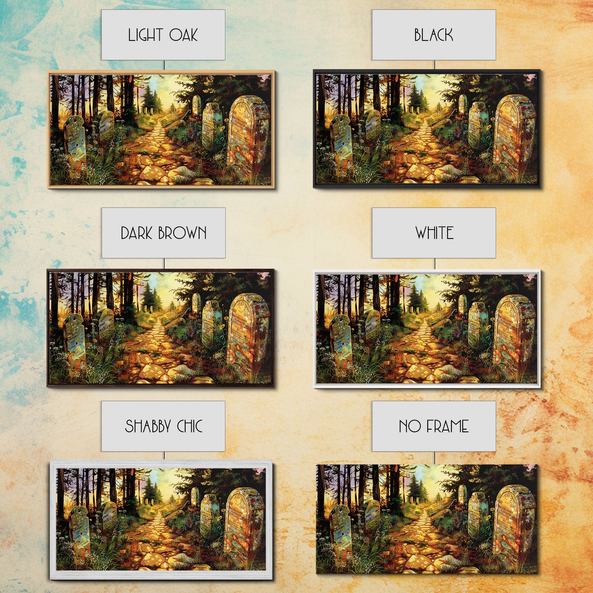 Haunted Cemetery In The Springtime, Framed Canvas Print, Colorful Halloween Decor, Halloween Wall Art