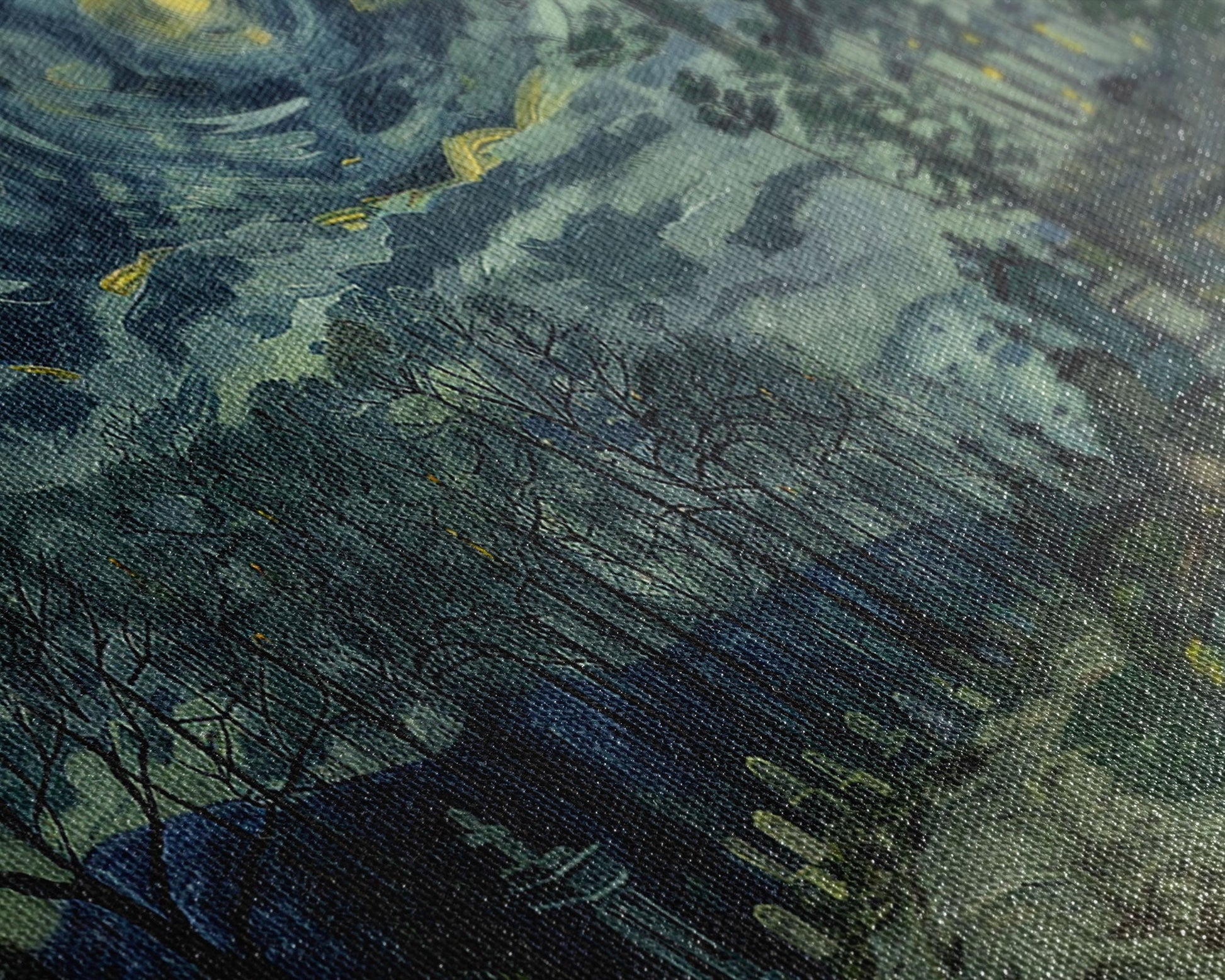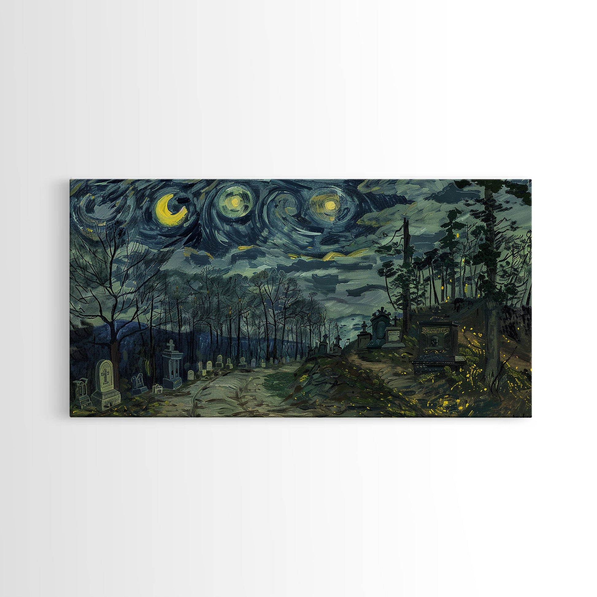 Haunted Graveyard Framed Canvas Print, Starry Night Van Gogh Inspired Halloween Decor, Spooky Vibes Halloween Gift