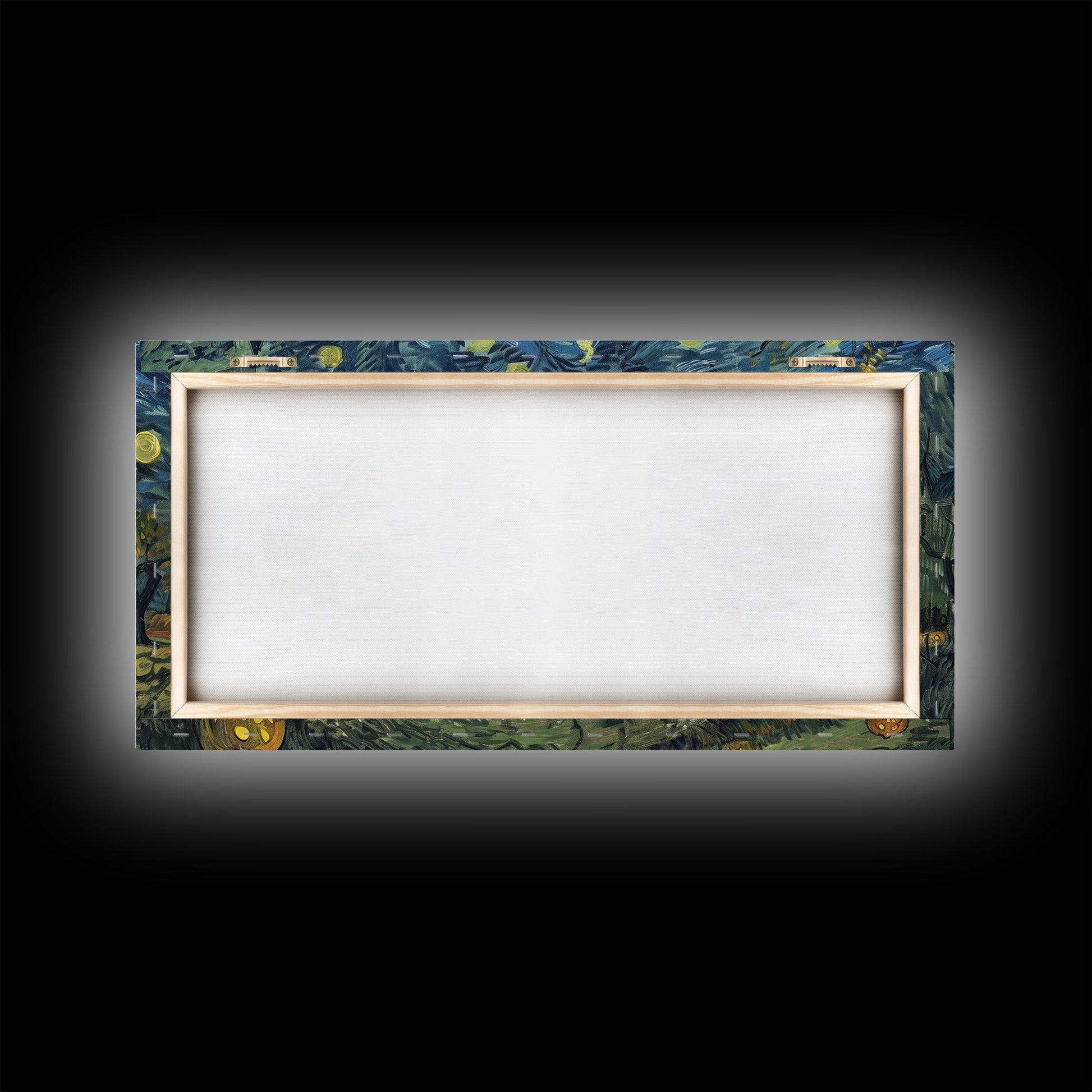 Haunted Halloween Cemetary, Starry Night Inspired Halloween Decor, Framed Canvas Print, Halloween Props