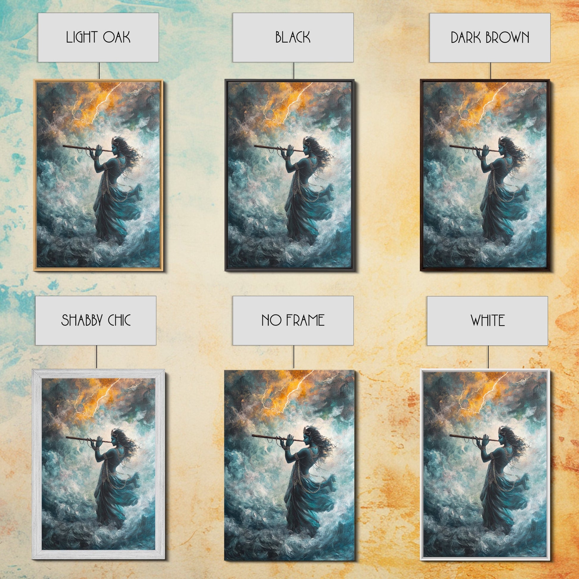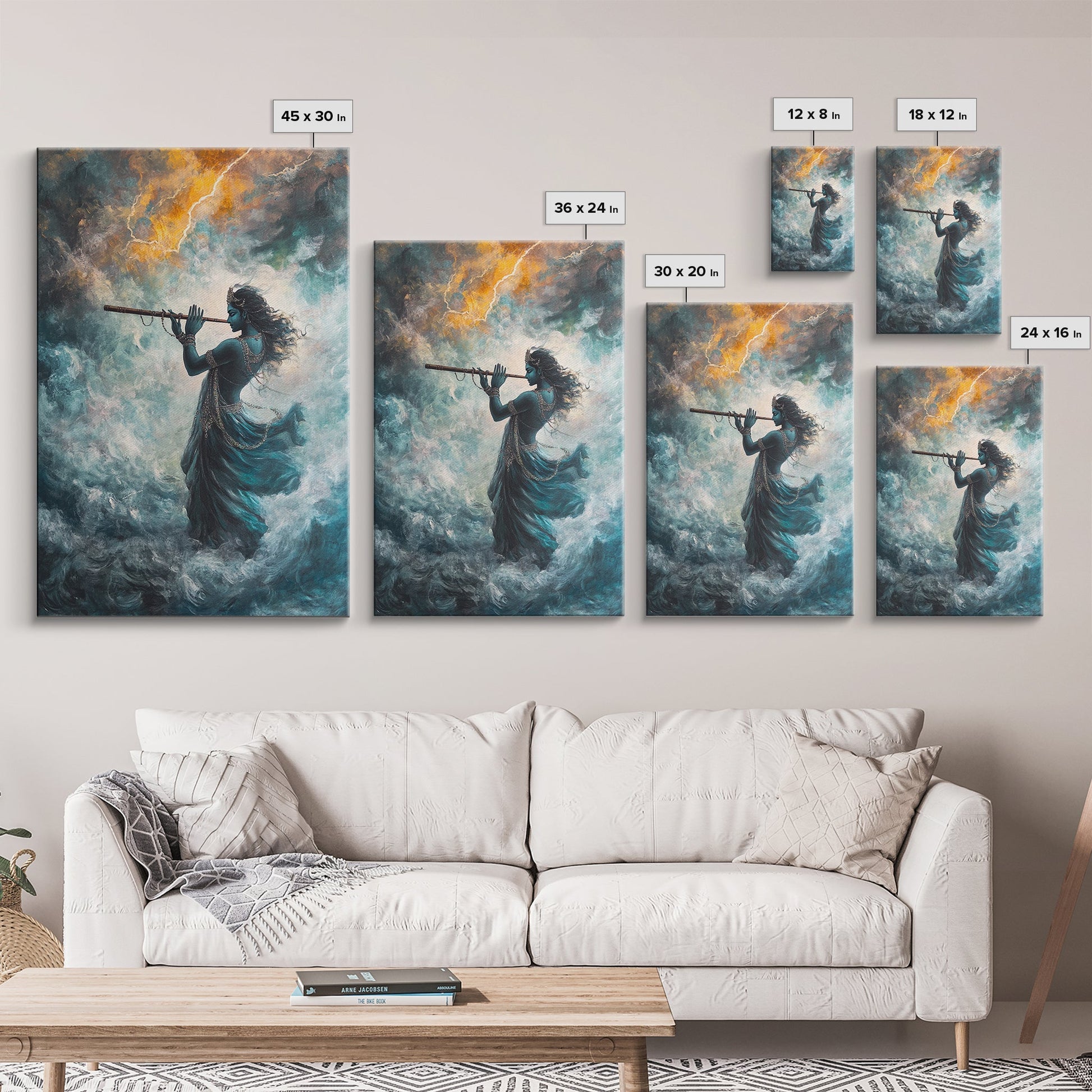 Hindu Art, Radha Krishna Playing Flute Painting Print, Hinduism Wall Art Wood Framed Canvas Print