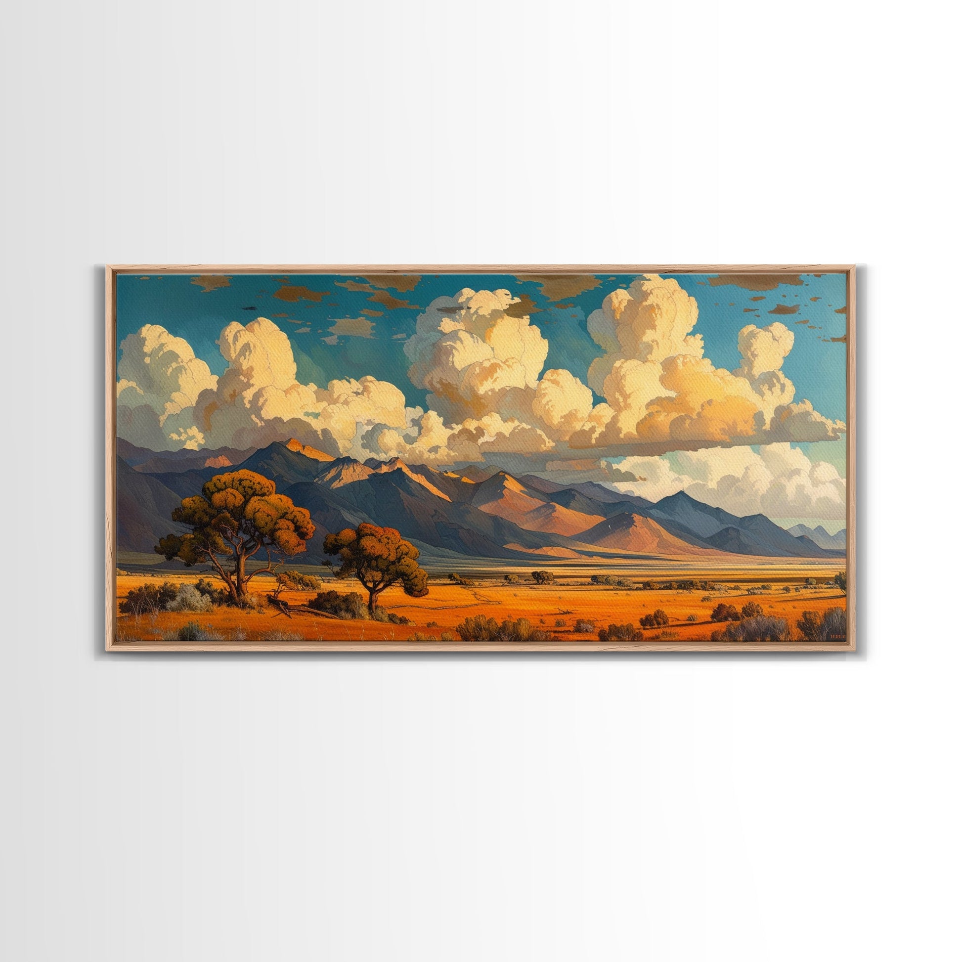 Home On The Mountains Framed Canvas Print, Southwestern Wall Art, Beautiful Home Decor For Above Sofa Or Couch, Rustic Farmhouse Art