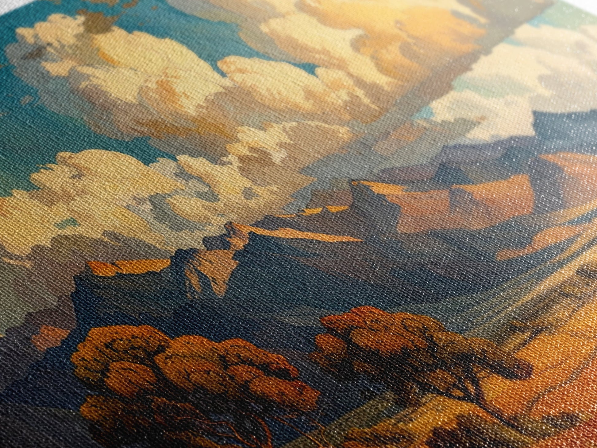 Most of our canvases are made in the USA, with the exception of canvases ordered with the light oak unstained frames, and any large canvases (24x48, 30x60, 16x48 and 20x60) ordered WITH a frame. These are temporarily made in and shipped from Europe, while we try to find a more consistent supplier in the USA.