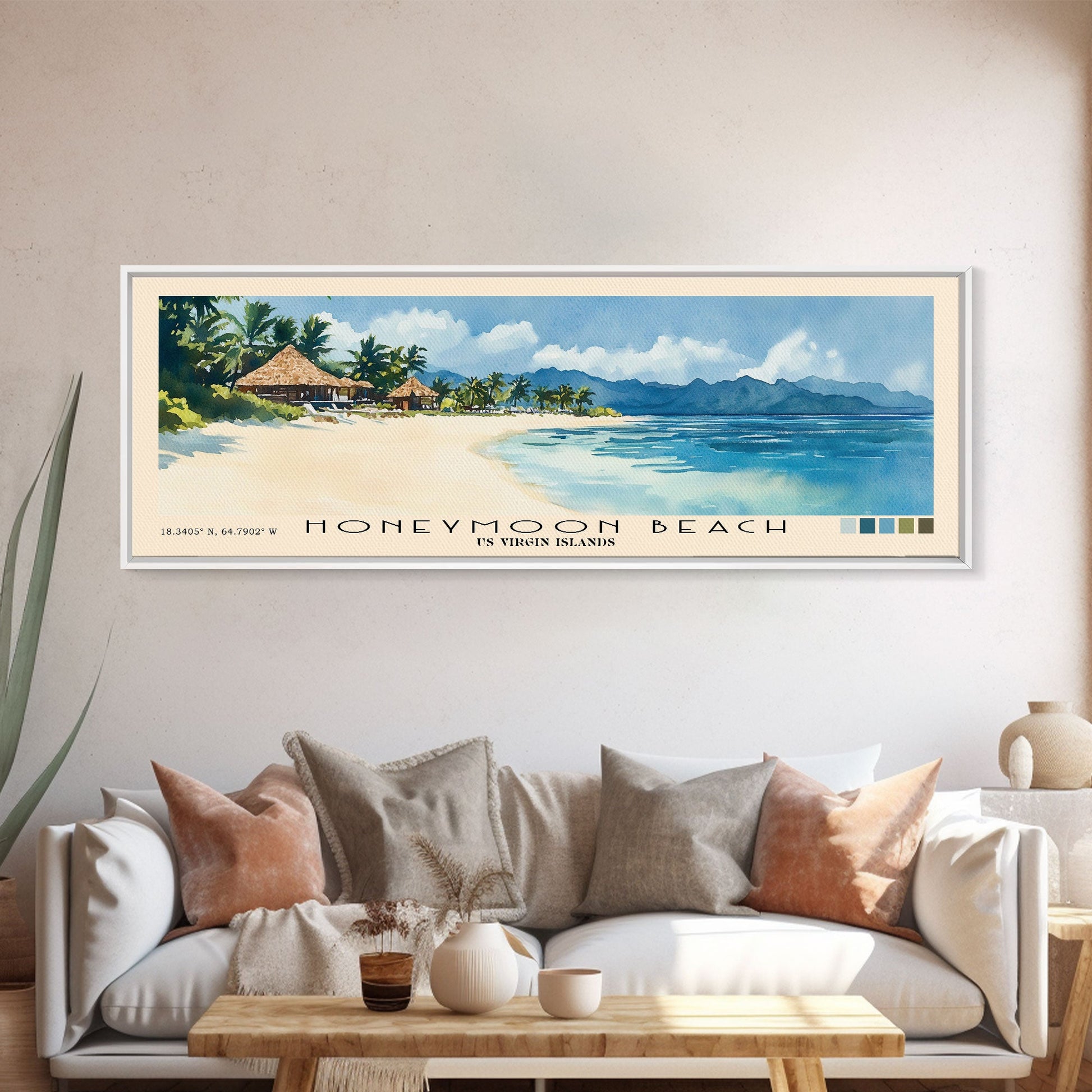 Honeymoon Beach, Fiji Watercolor Print, Vacation Gift, Fiji Wall Art, Beach Painting, Beach Decor, Large Wall Art, Wood Frame Art