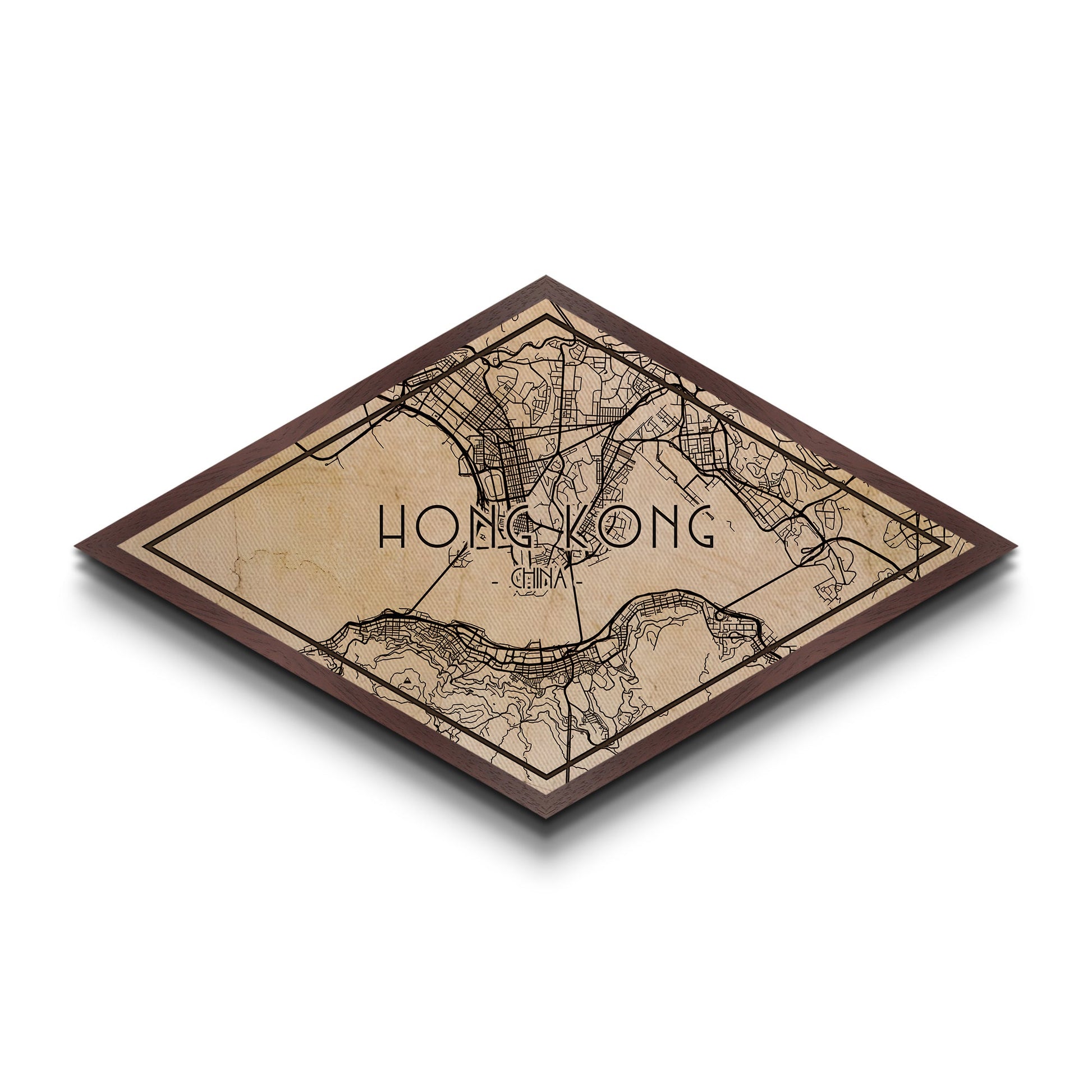 Hong Kong Diamond Shaped City Map, Custom Diamond Shaped Wall Art, City Map Canvas