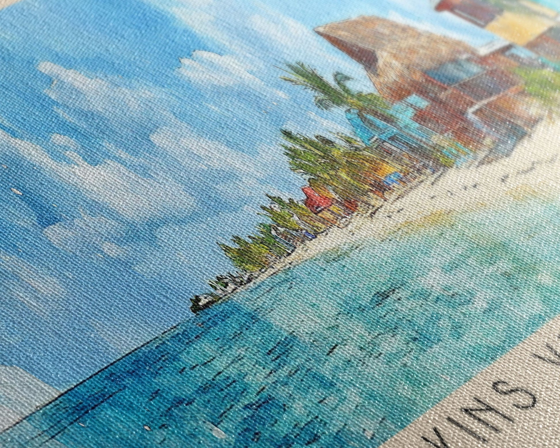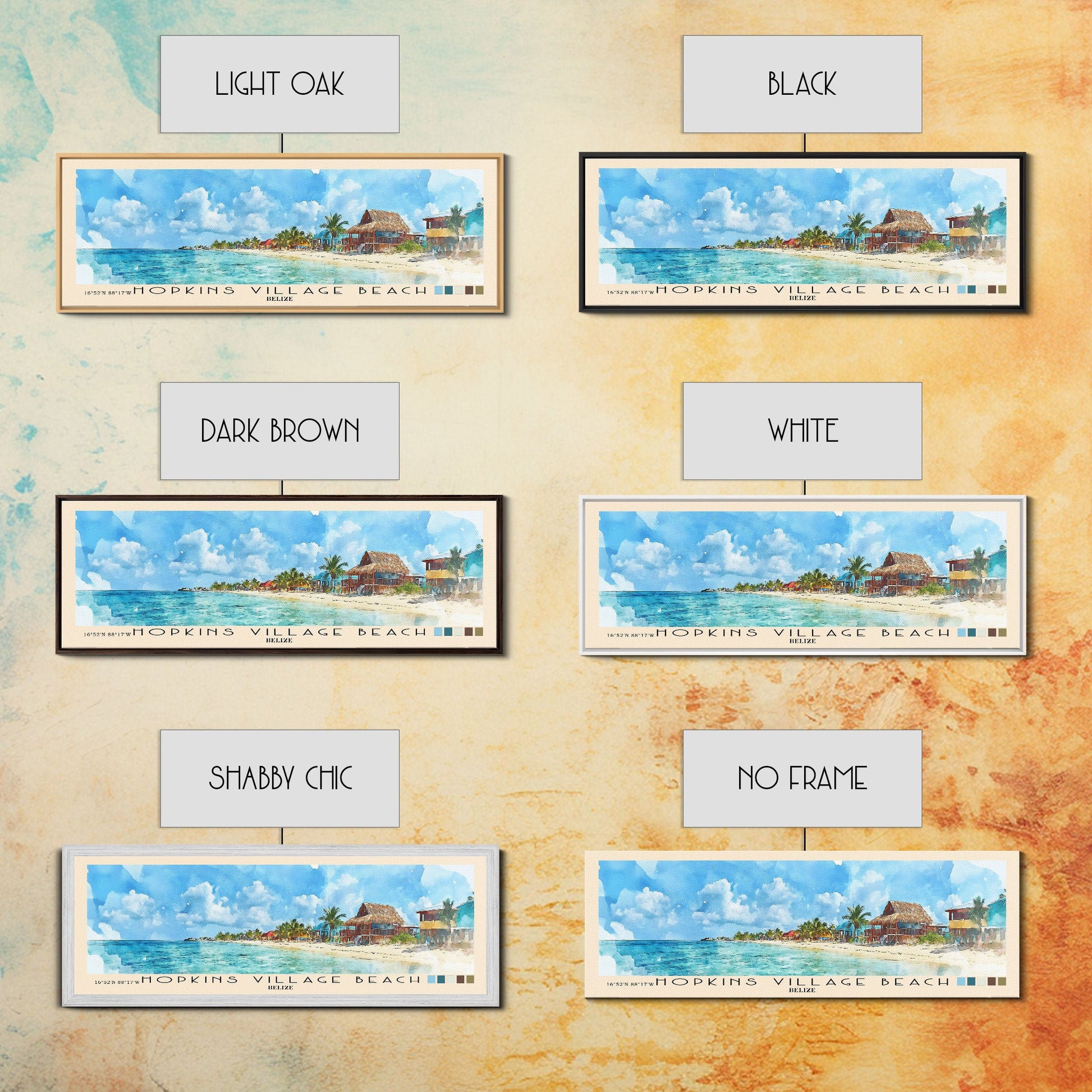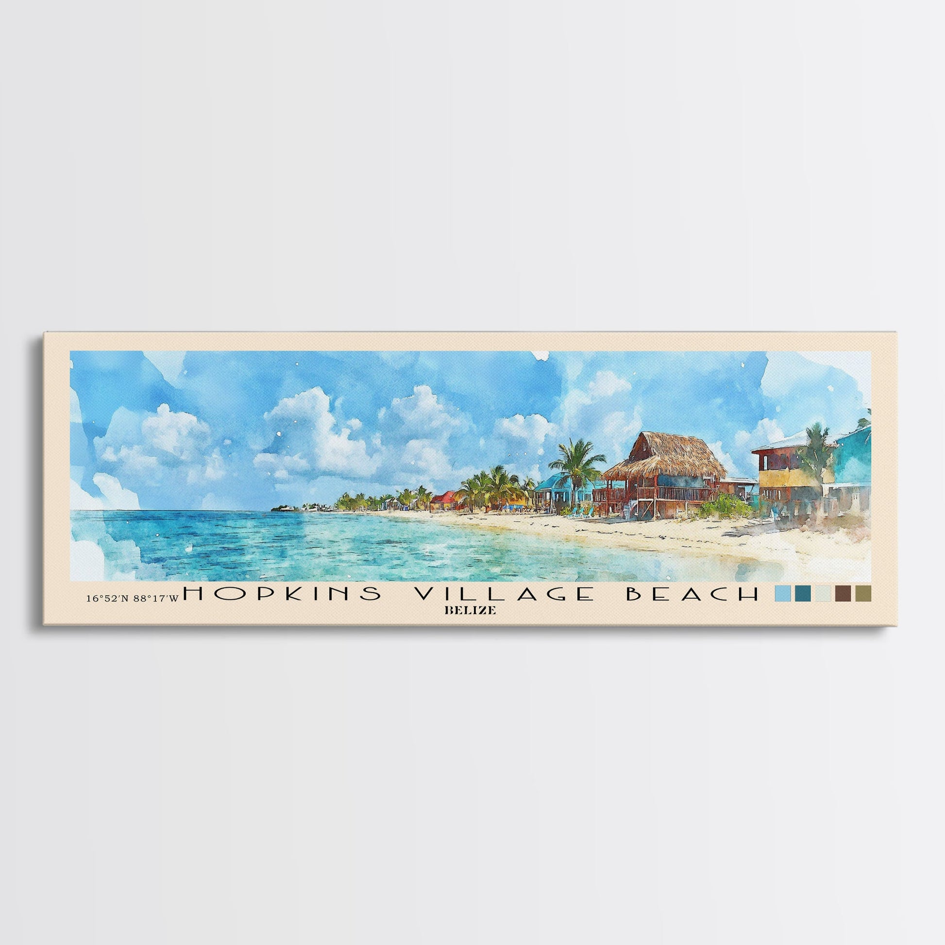 Hopkins Village Beach, Belize Watercolor Beach Print, Vacation Gift, Belize Wall Art, Framed Canvas Print, Framed Beach Painting