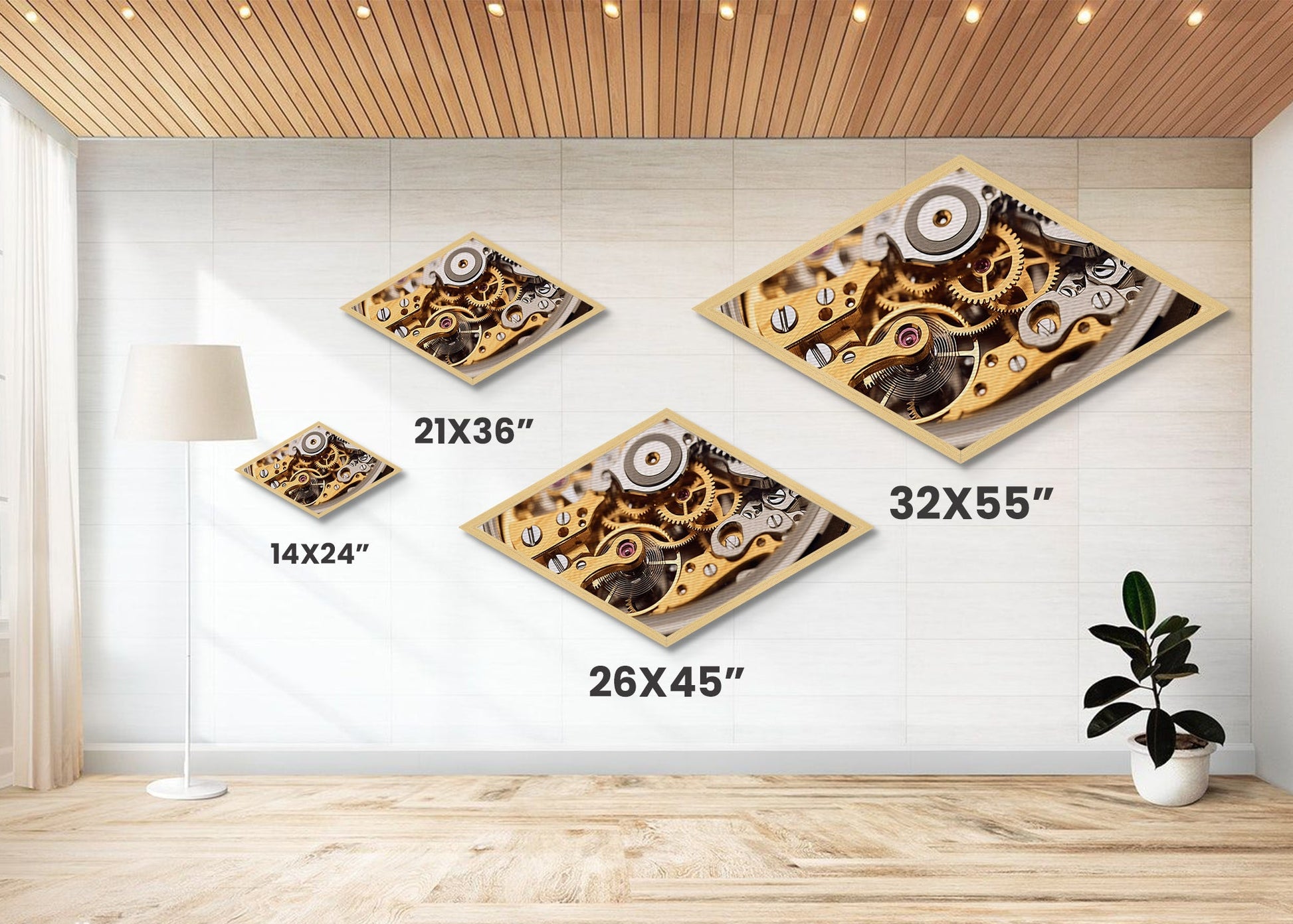 Horology Precision Gears Diamond Shaped Canvas Embossed Print, Steampunk Clockwork Art, Industrial Style Decor, Watchmaker Gift
