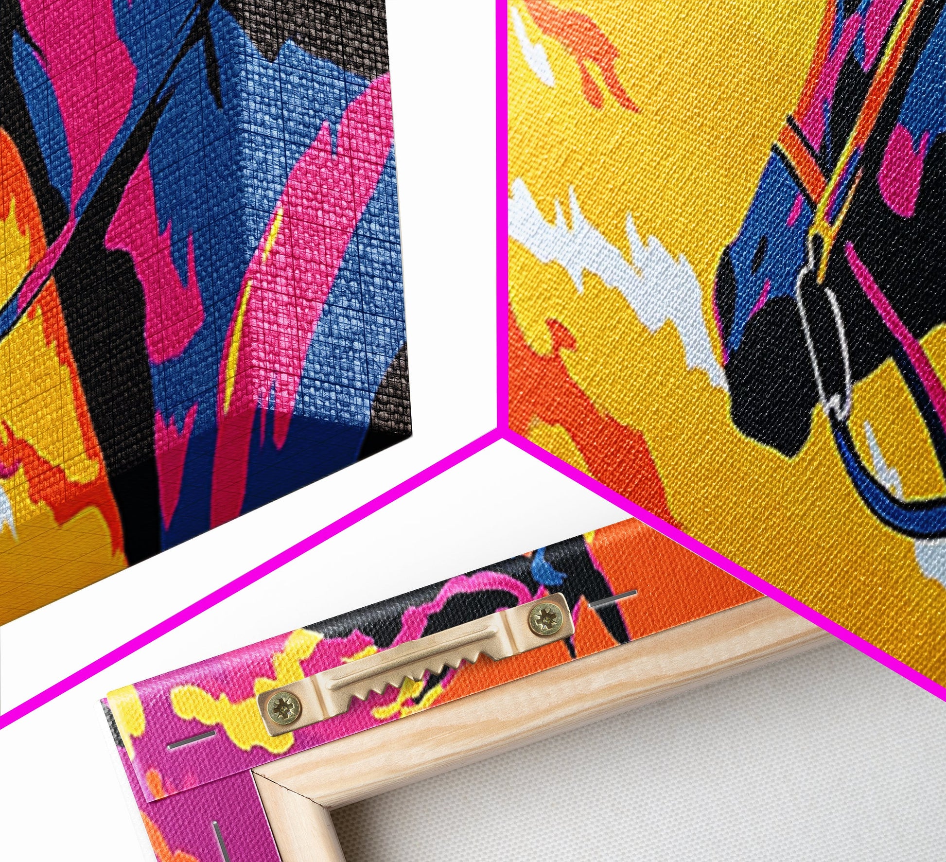 Hello and thank you for taking the time to view our modern high quality giclée artwork! We offer both posters and stretched canvas prints. Our posters are printed on Ultra Matte 60 lb / 230 GSM high quality photo paper, with a thickness of 10 mil. Our canvases are printed on museum grade 350 GSM canvas material with ECO friendly archival grade ink, then hand stretched and stapled over premium, FSC certified and shrink resistant frames. Designed and built to last a lifetime.