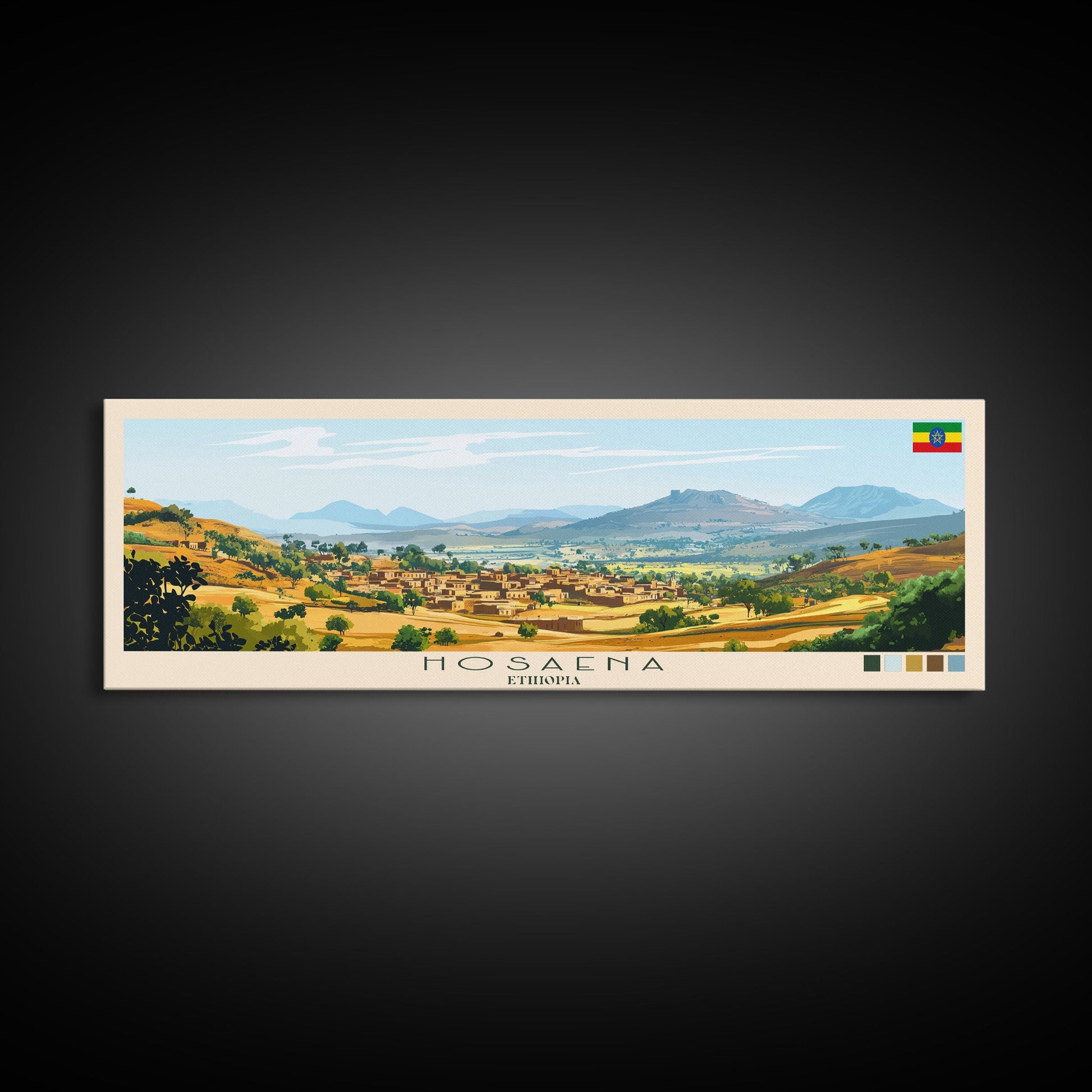Hosaena, Ethiopia Panoramic Travel Poster Canvas Print, Hosaena, Ethiopia Painting, Ethiopia Art, Hosaena Panoramic Travel Art, Travel Painting