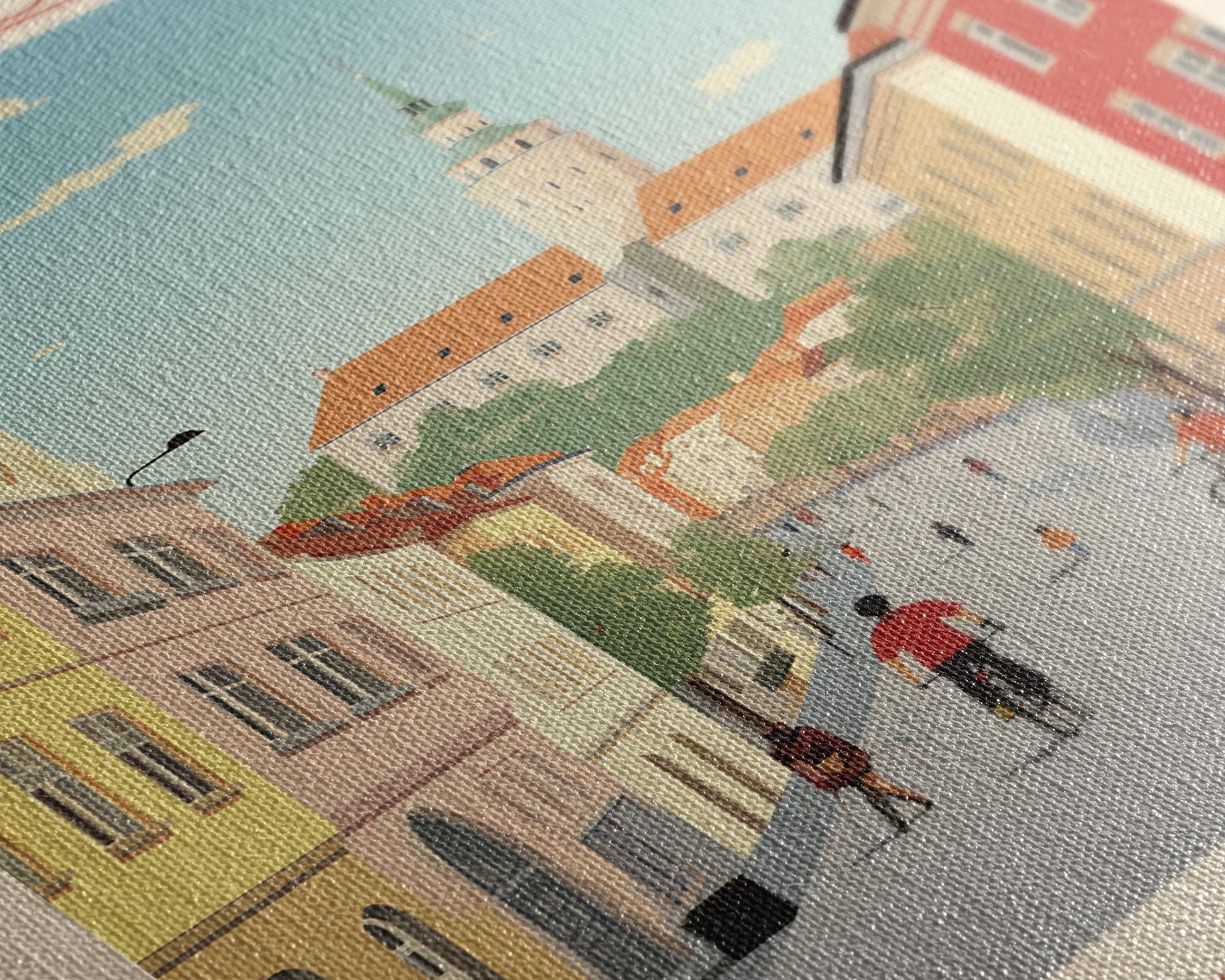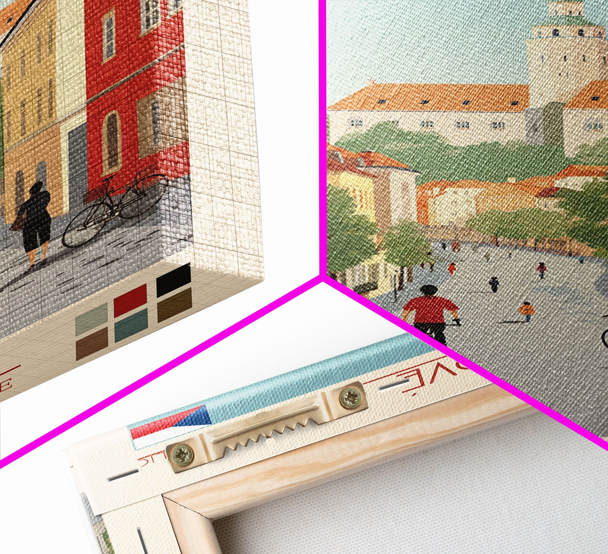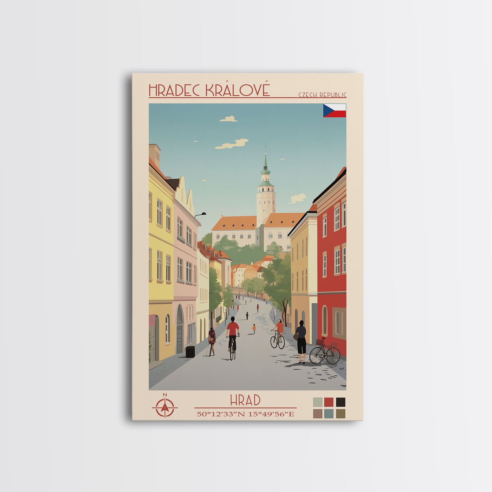 Hradec Králové Czech Republic Travel Poster Framed Canvas Print, Midcentury Modern Art, Pop Art Wall Decor, Scenic Living Room Art, Bedroom Gift
