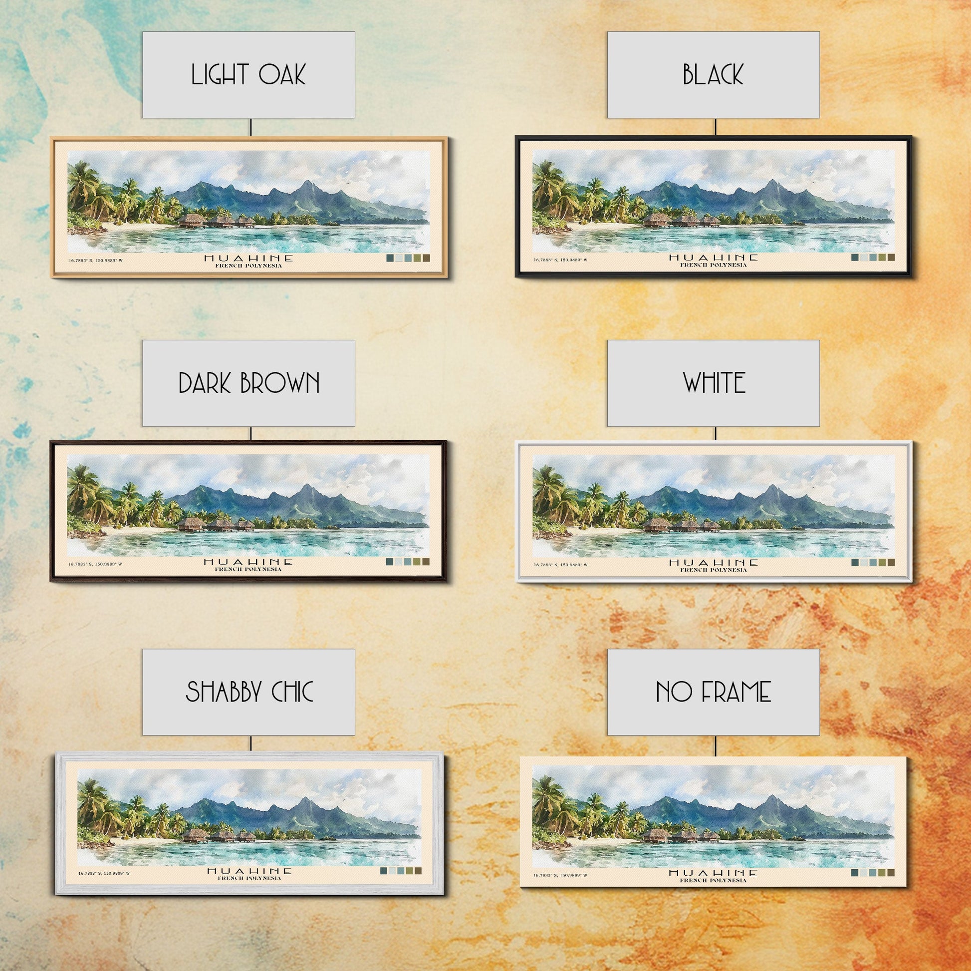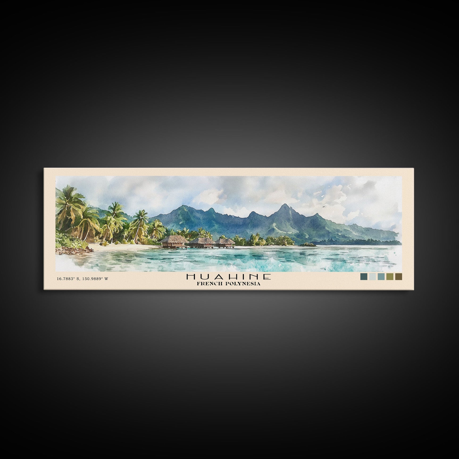 Huahine, French Polynesia Watercolor Print, Vacation Gift, French Polynesia Wall Art, Beach Painting, Beach Decor, Large Wall Art, Wood Frame Art