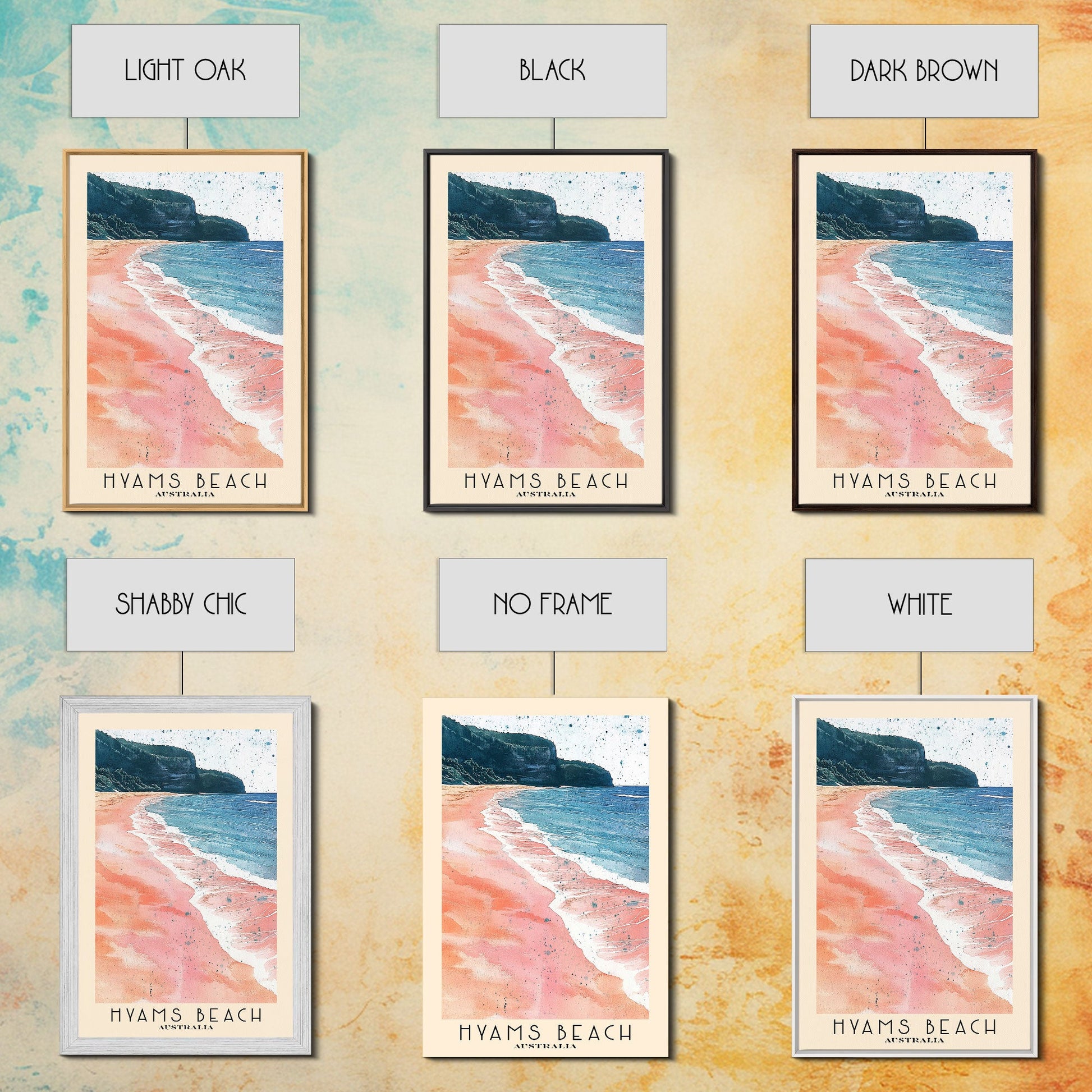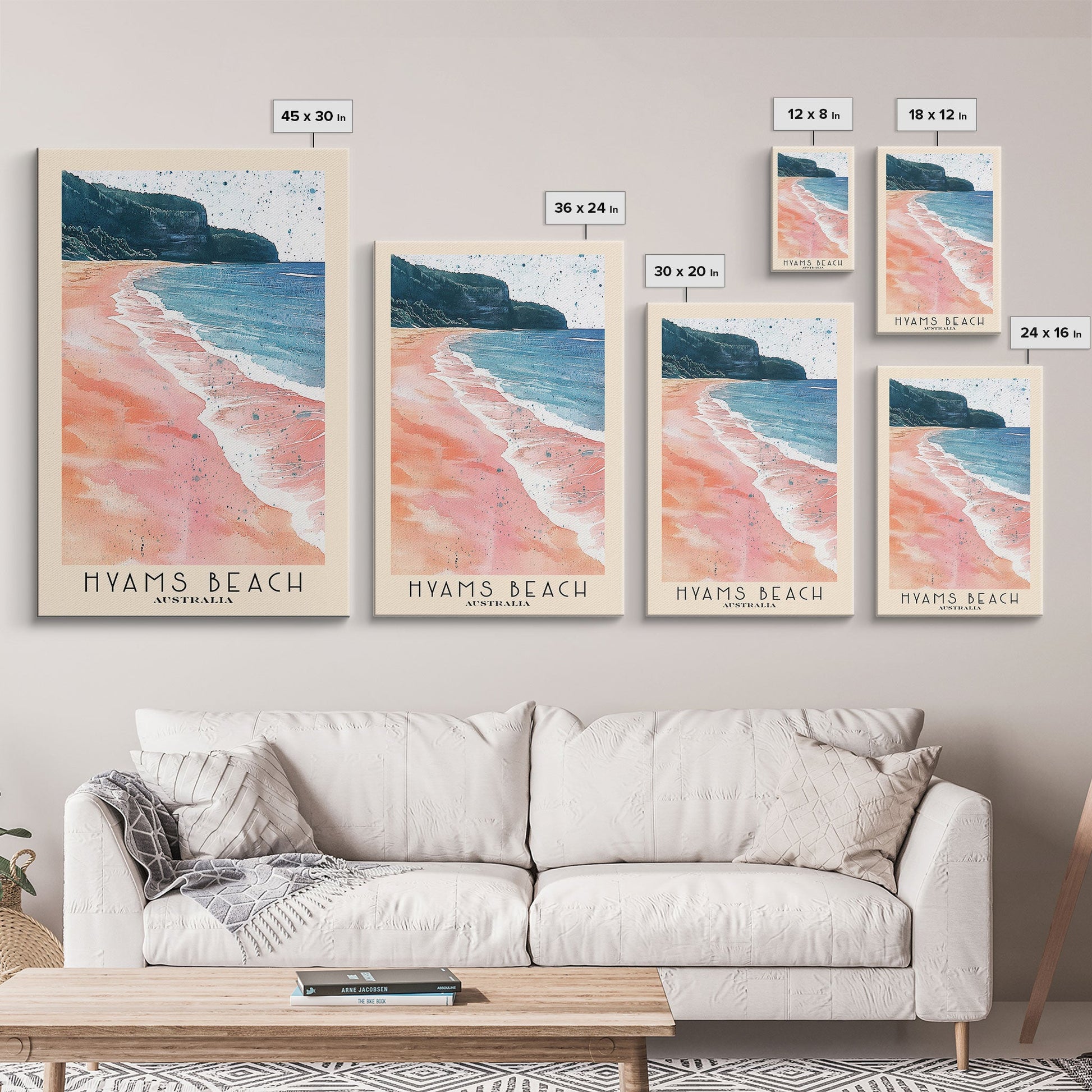 Hyams Beach, Australia Watercolor Beach Print, Vacation Gift, Australia Wall Art, Framed Canvas Print, Framed Beach Painting