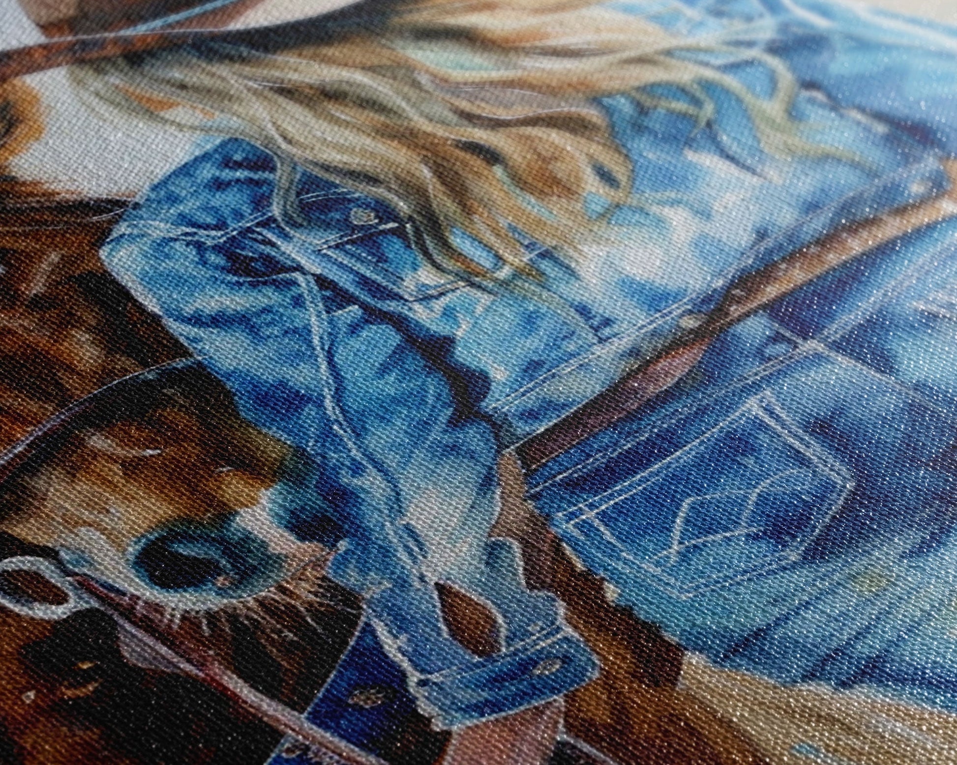Intense Cowboy and Horse Silhouette - Framed Canvas Print, Western Wall Art, Rustic Decor, Living Room and Bedroom Art Print
