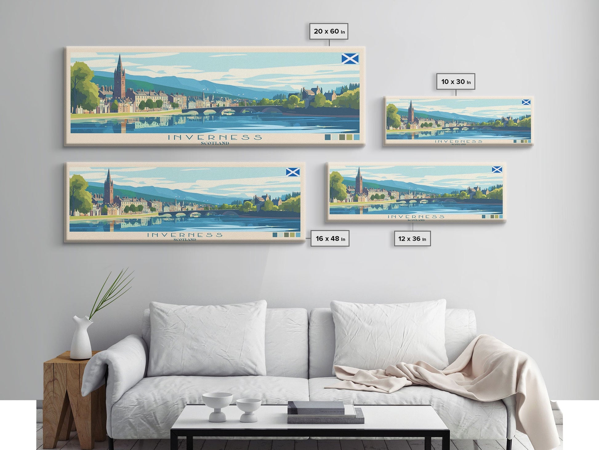 Inverness, Scotland Panoramic Travel Poster Canvas Print, Inverness, Scotland Painting, Scotland Art, Inverness Travel Art, Living Room Painting