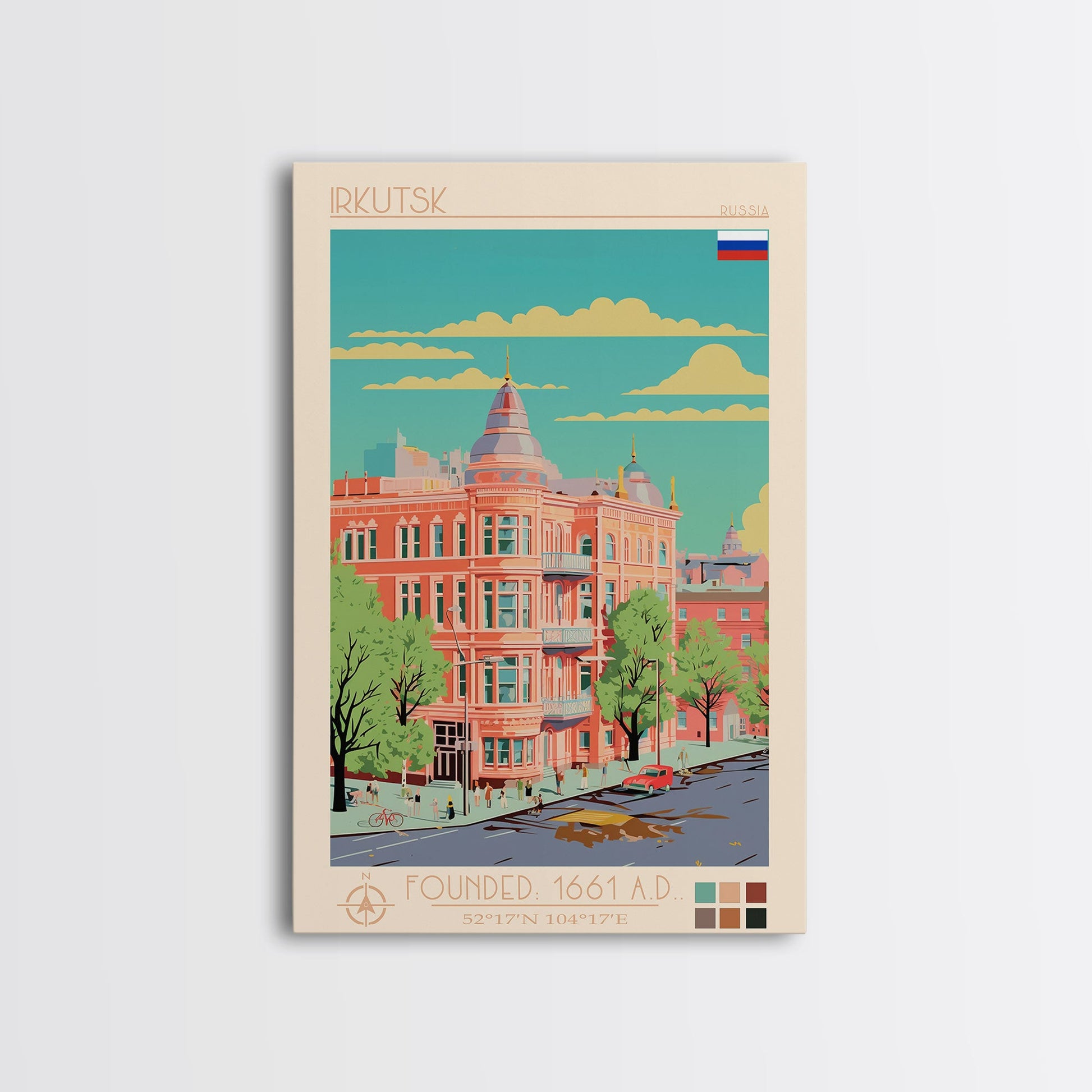 Irkutsk Russia Travel Poster Framed Canvas Print, Midcentury Modern Art, Pop Art Wall Decor, Scenic Bedroom Art, Office Decoration
