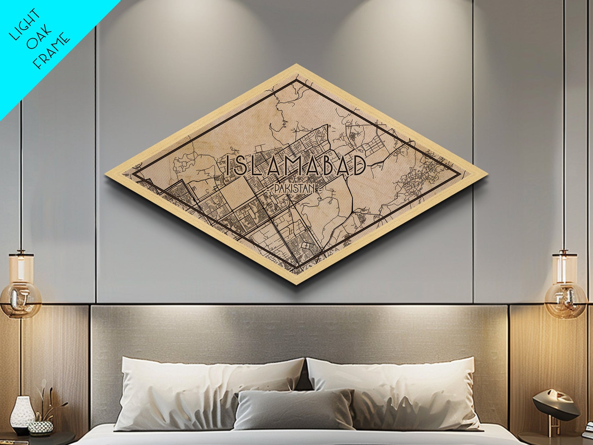 Islamabad - Pakistan Diamond Shaped City Map, Custom Diamond Shaped Wall Art, City Map Canvas