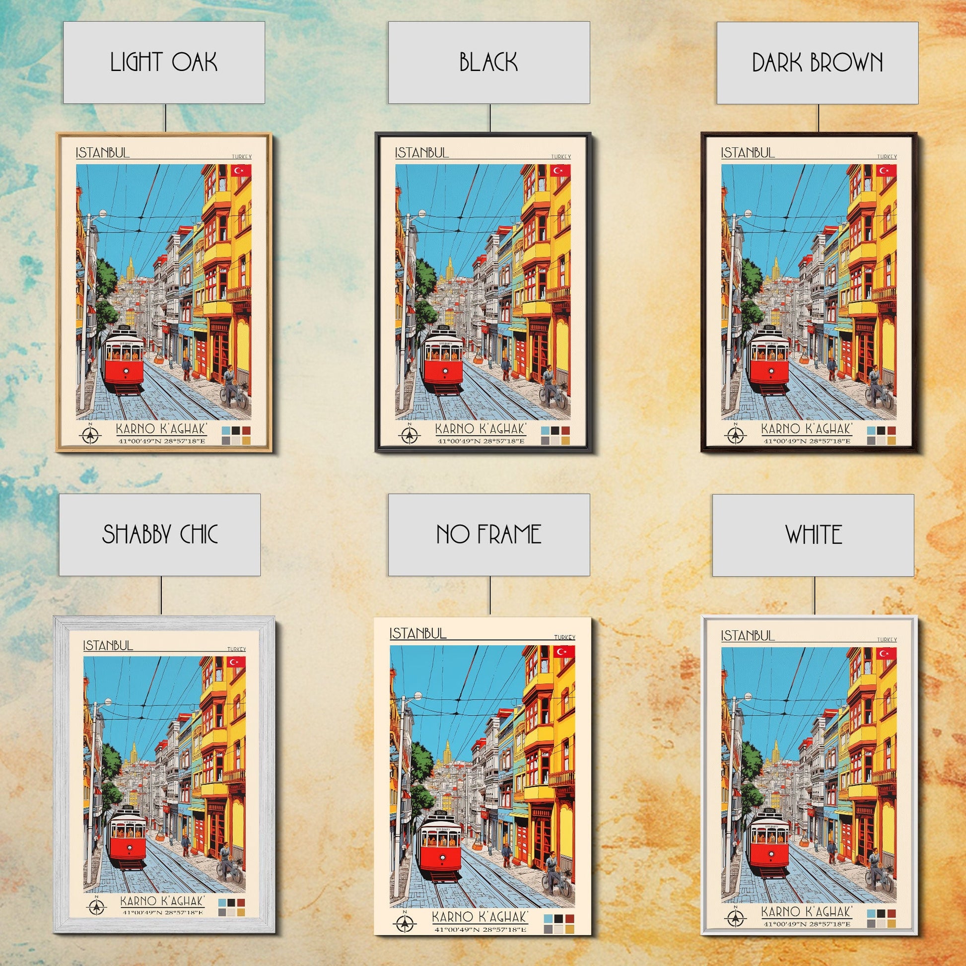 Istanbul Turkey Travel Poster Framed Canvas Print, Midcentury Modern Art, Pop Art Wall Decor, Scenic Living Room Art, Bedroom Decor