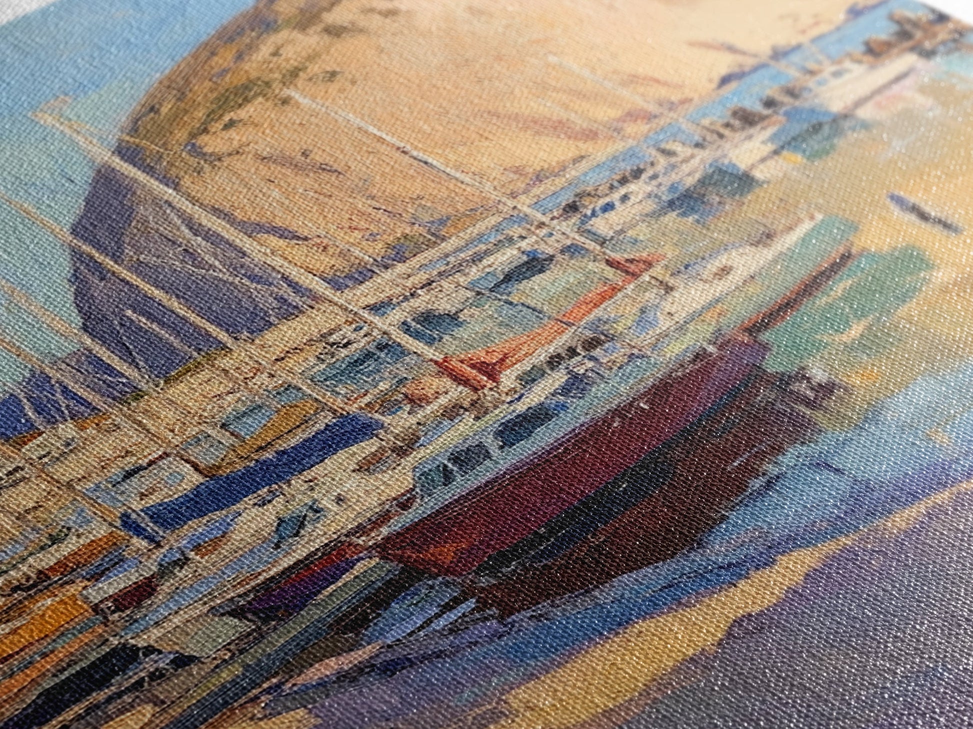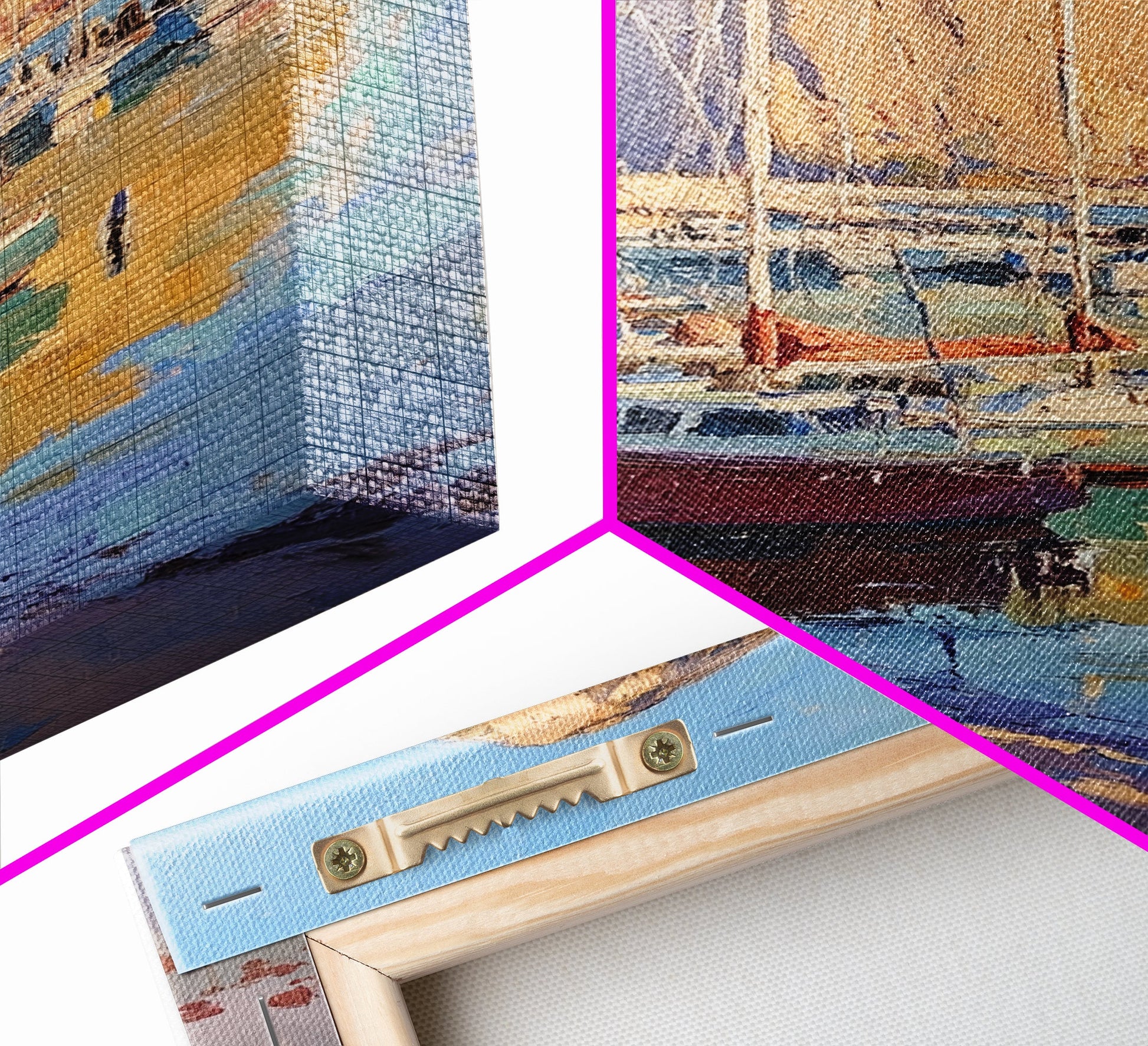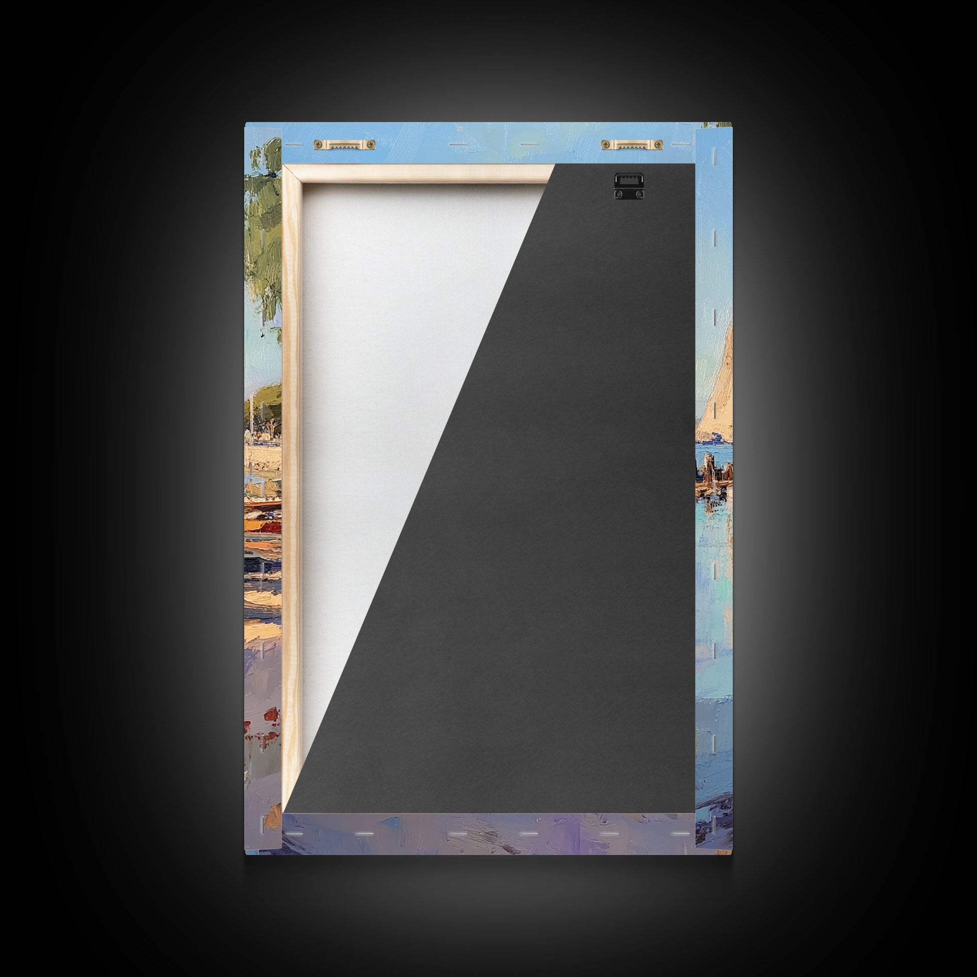 Italian Seaside Village Framed Canvas Print, Sailboat Painting, Italy Painting, Italy Decor, Vacation Gift Idea, Maine Oil Painting, Nautical Home Decor