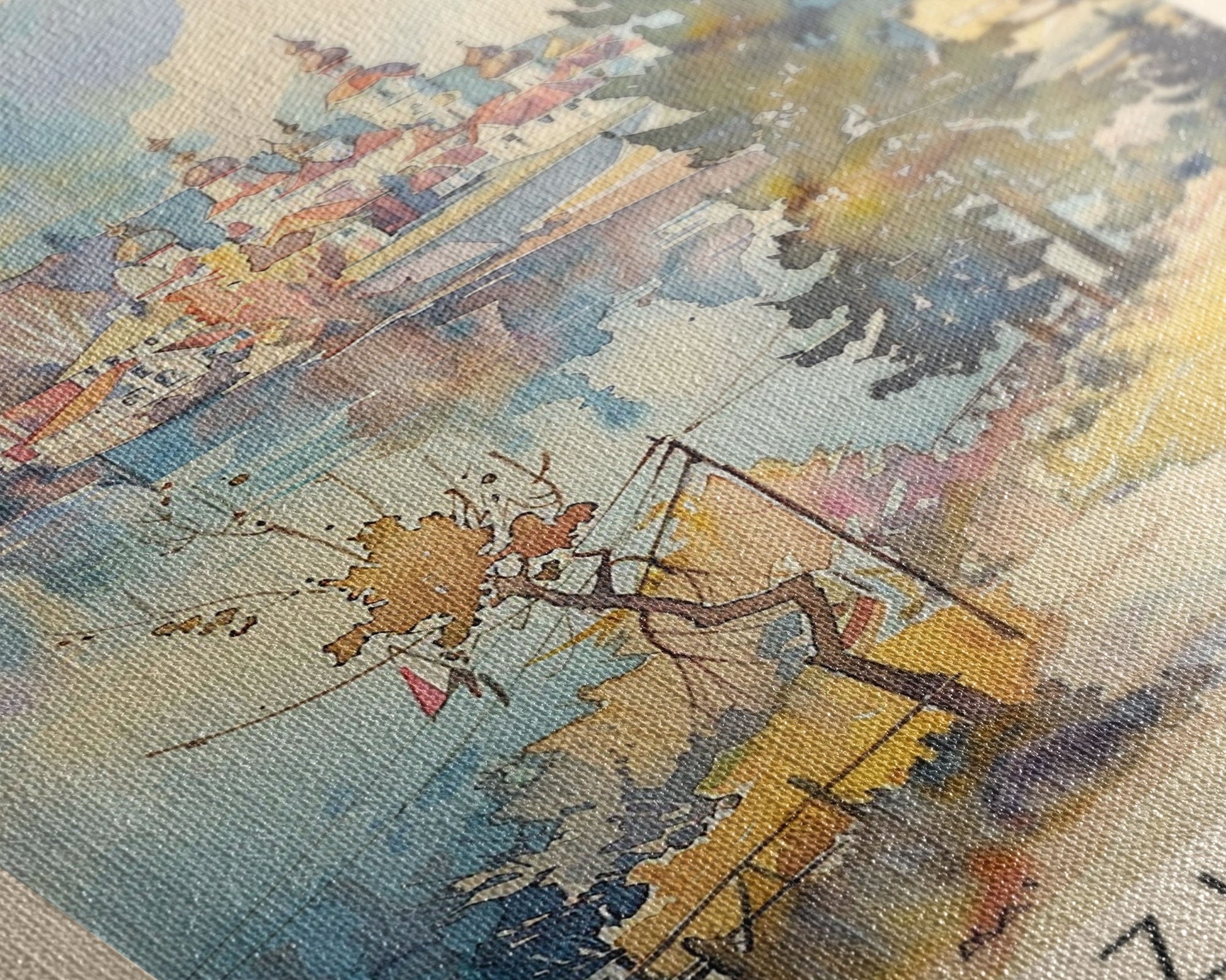 Most of our canvases are made in the USA, with the exception of canvases ordered with the light oak unstained frames, and any large canvases (24x48, 30x60, 16x48 and 20x60) ordered WITH a frame. These are temporarily made in and shipped from Europe, while we try to find a more consistent supplier in the USA.