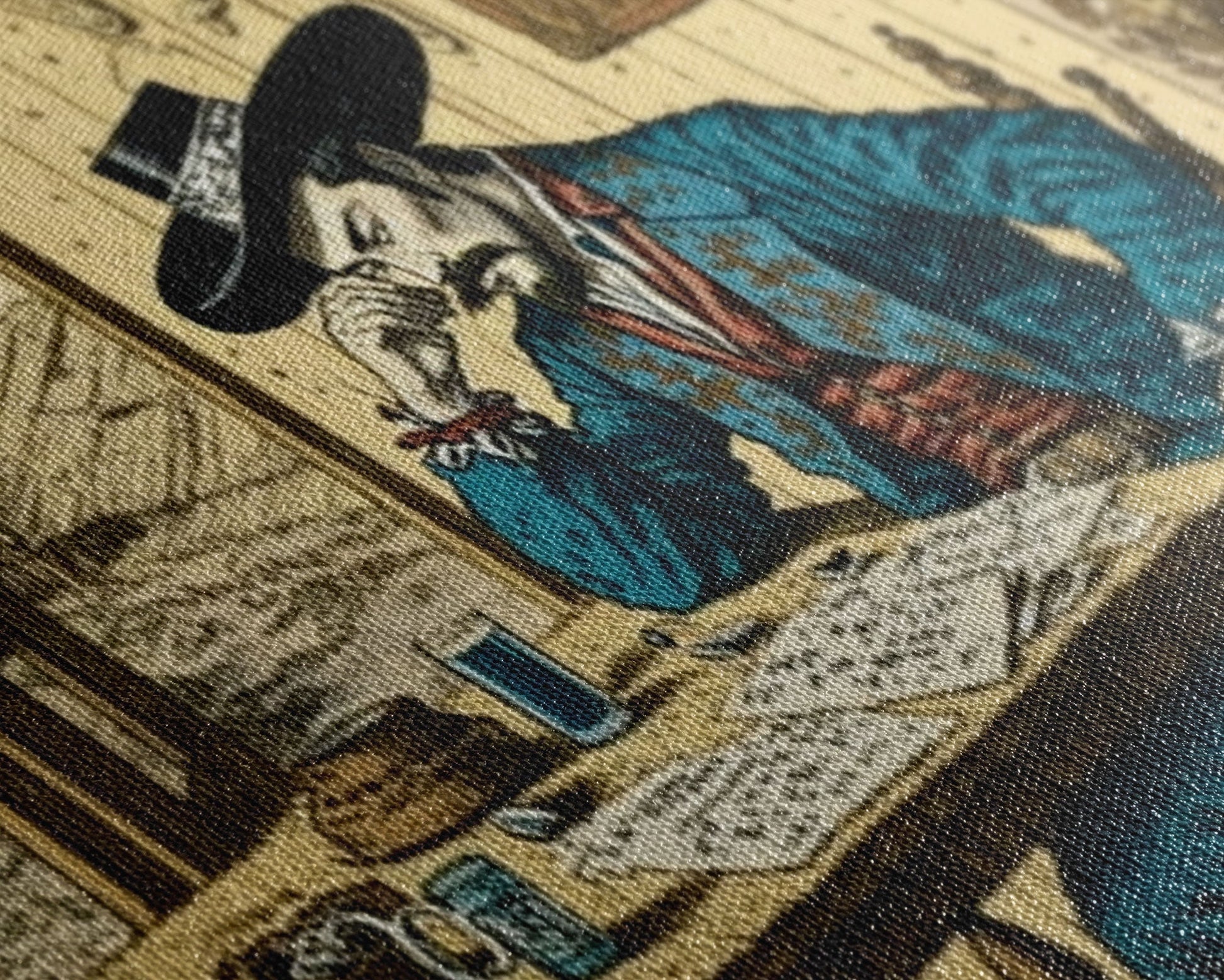 Japanese Cowboy, Wild West Samurai Mashup Art, Framed Canvas Print, Wild Western Decor, Home Art, Living Room Decor