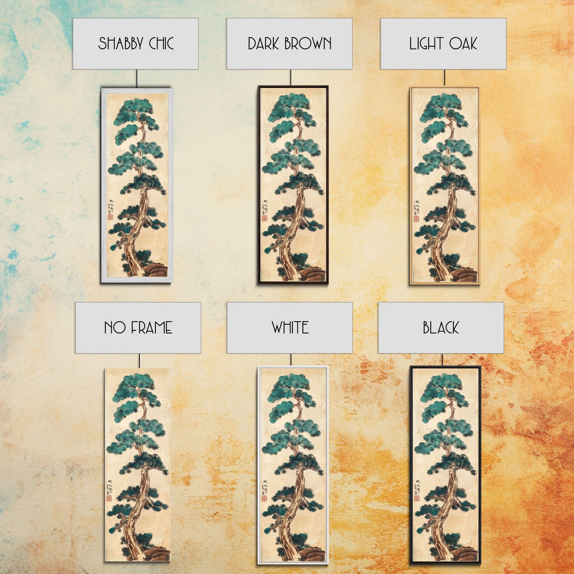Japanese Pines Artistic Interpretation Tall Branches Skinny Art Tall Art Framed Canvas Print Japanese Style Art Ukiyo-e Art Wood Block Print Classic