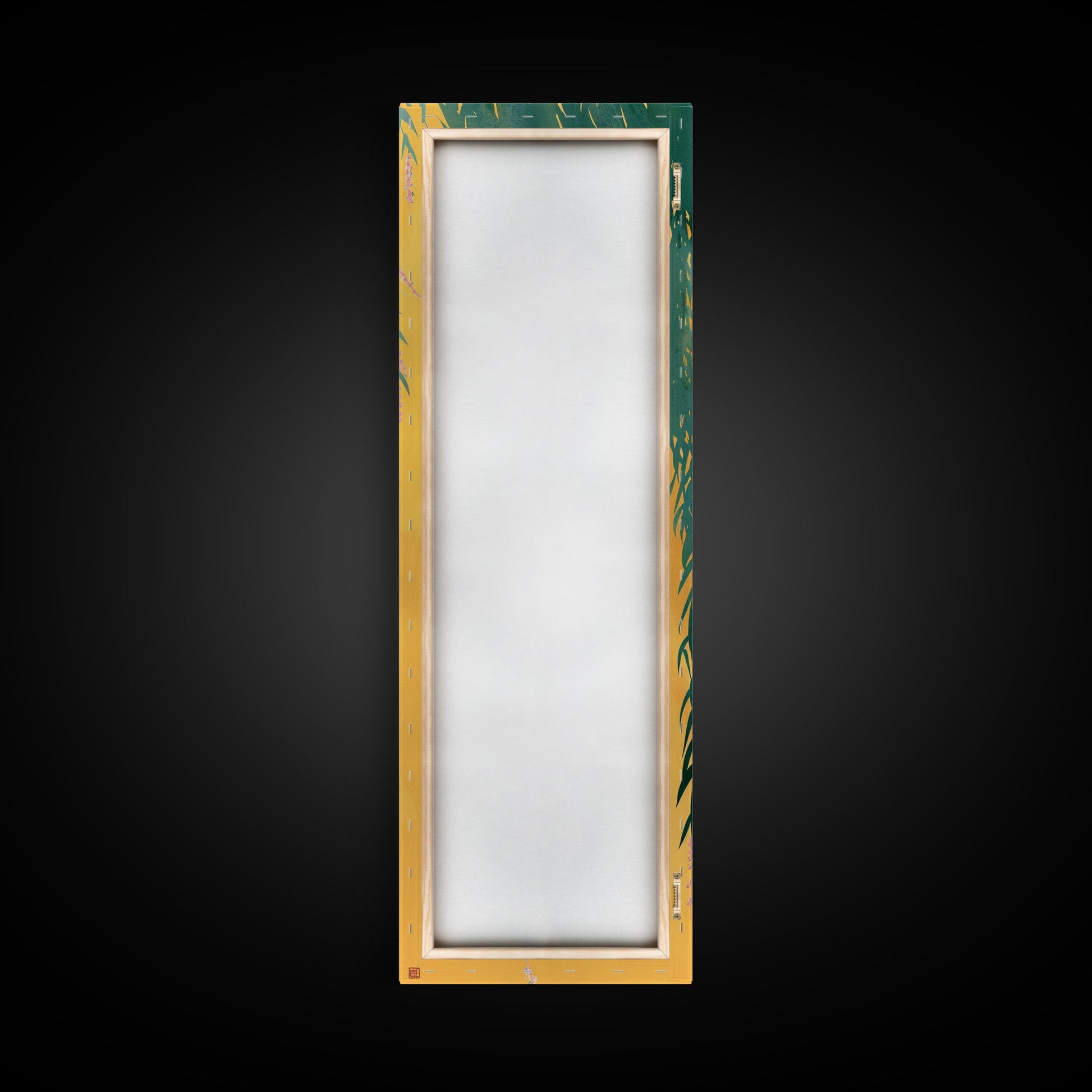Japanese Skinny Art of Wisteria Hanging Over a Golden Background – Framed Canvas Print