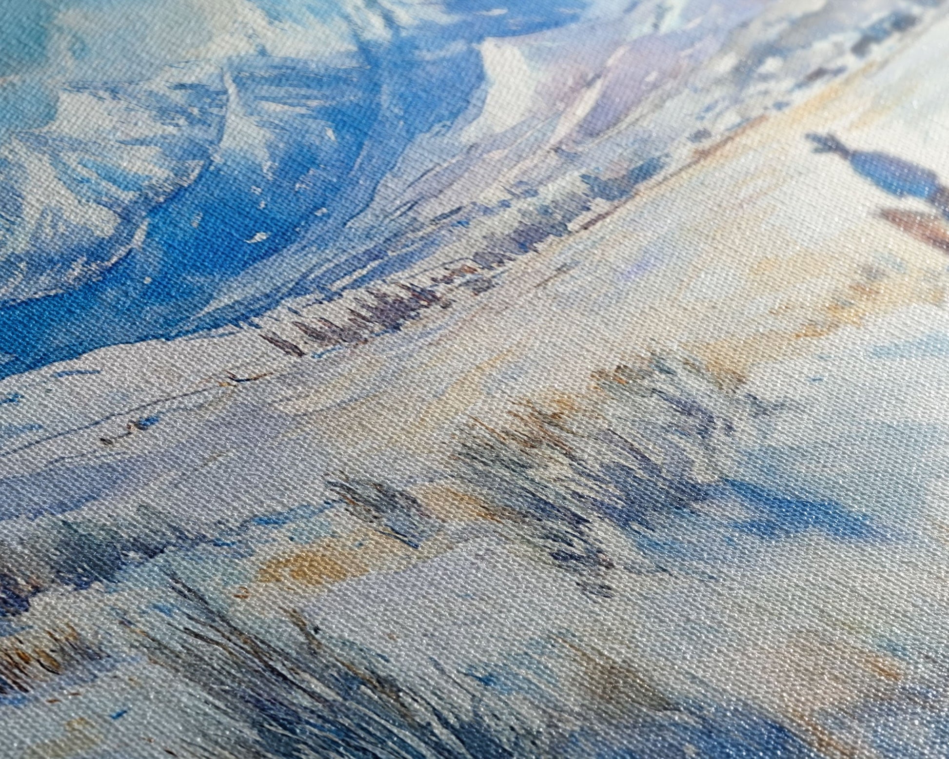 Most of our canvases are made in the USA, with the exception of canvases ordered with the light oak unstained frames, and any large canvases (24x48, 30x60, 16x48 and 20x60) ordered WITH a frame. These are temporarily made in and shipped from Europe, while we try to find a more consistent supplier in the USA.