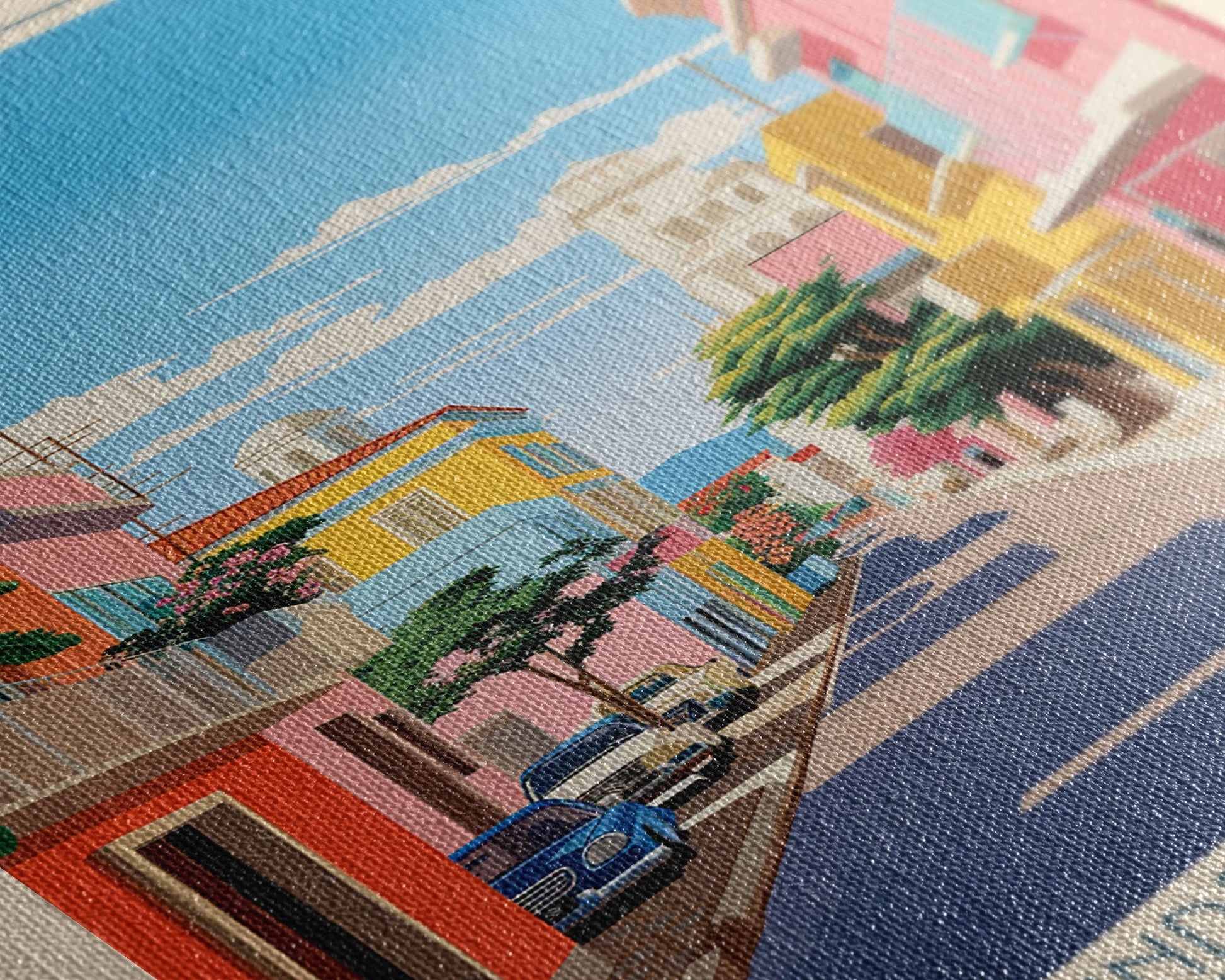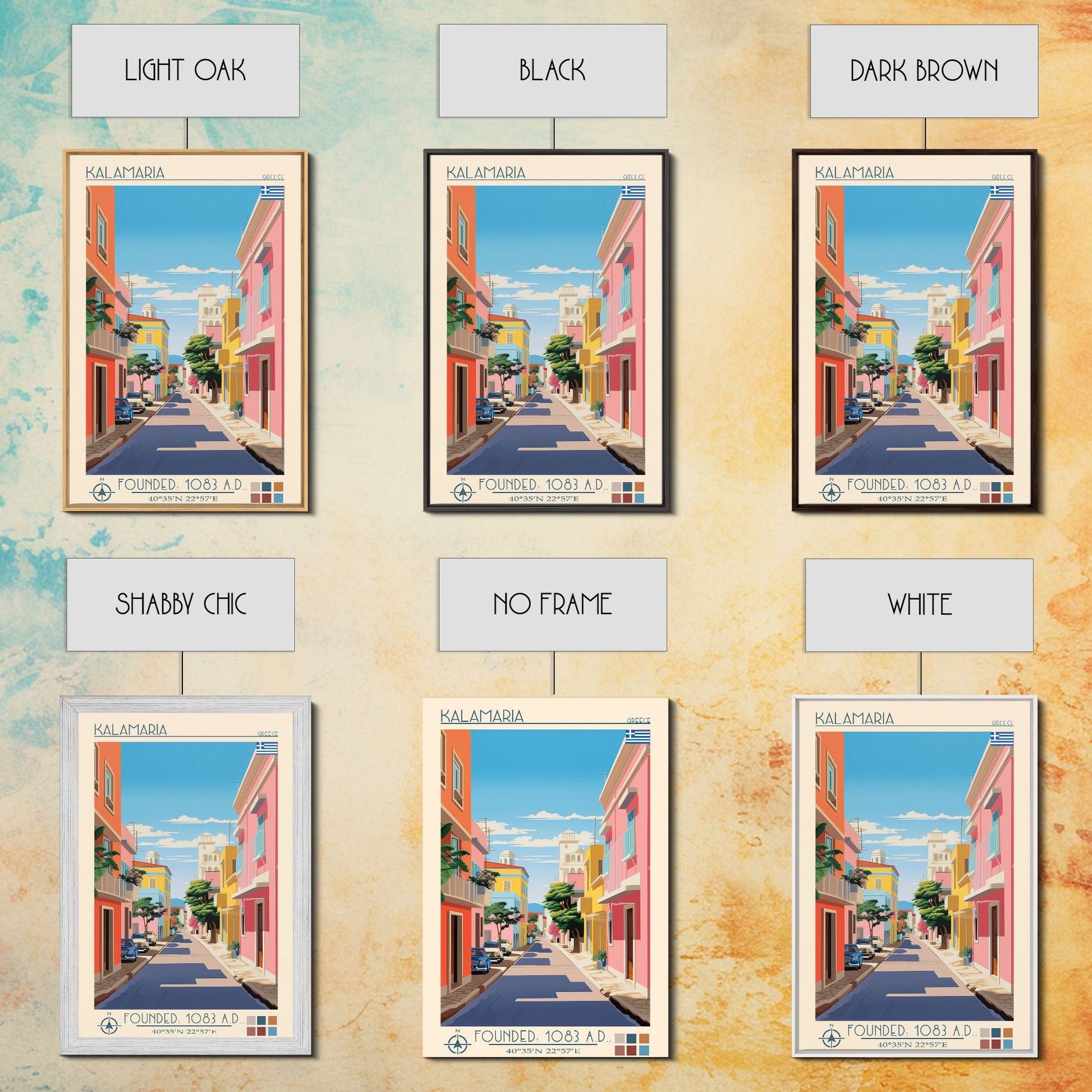 Kalamaria Greece Travel Poster Framed Canvas Print, Midcentury Modern Art, Pop Art Wall Decor, Scenic Wall Art, Living Room Decoration, Office Art
