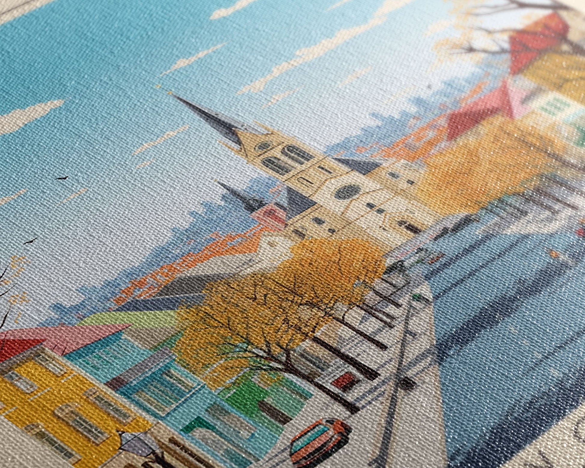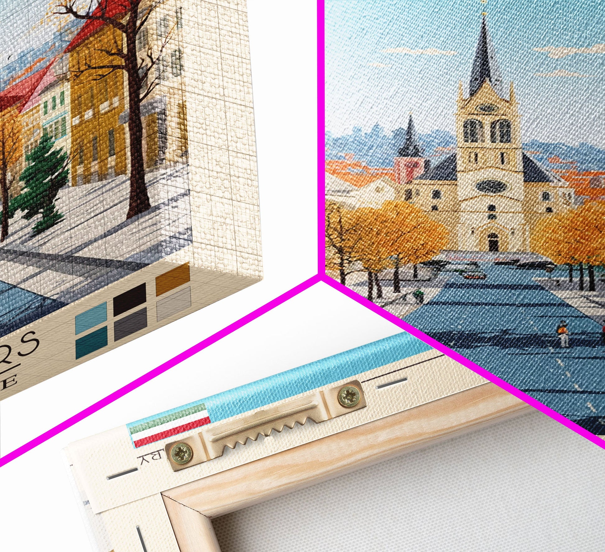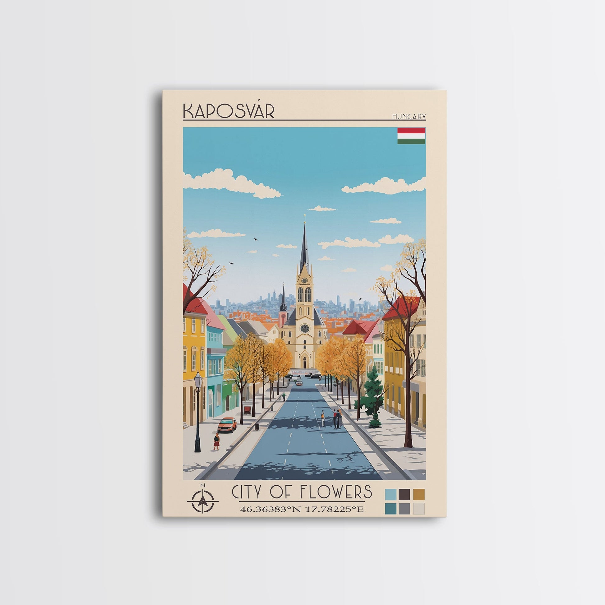 Kaposvár Hungary Travel Poster Framed Canvas Print, Midcentury Modern Art, Pop Art Wall Decor, Scenic Bedroom Art, Office Decoration