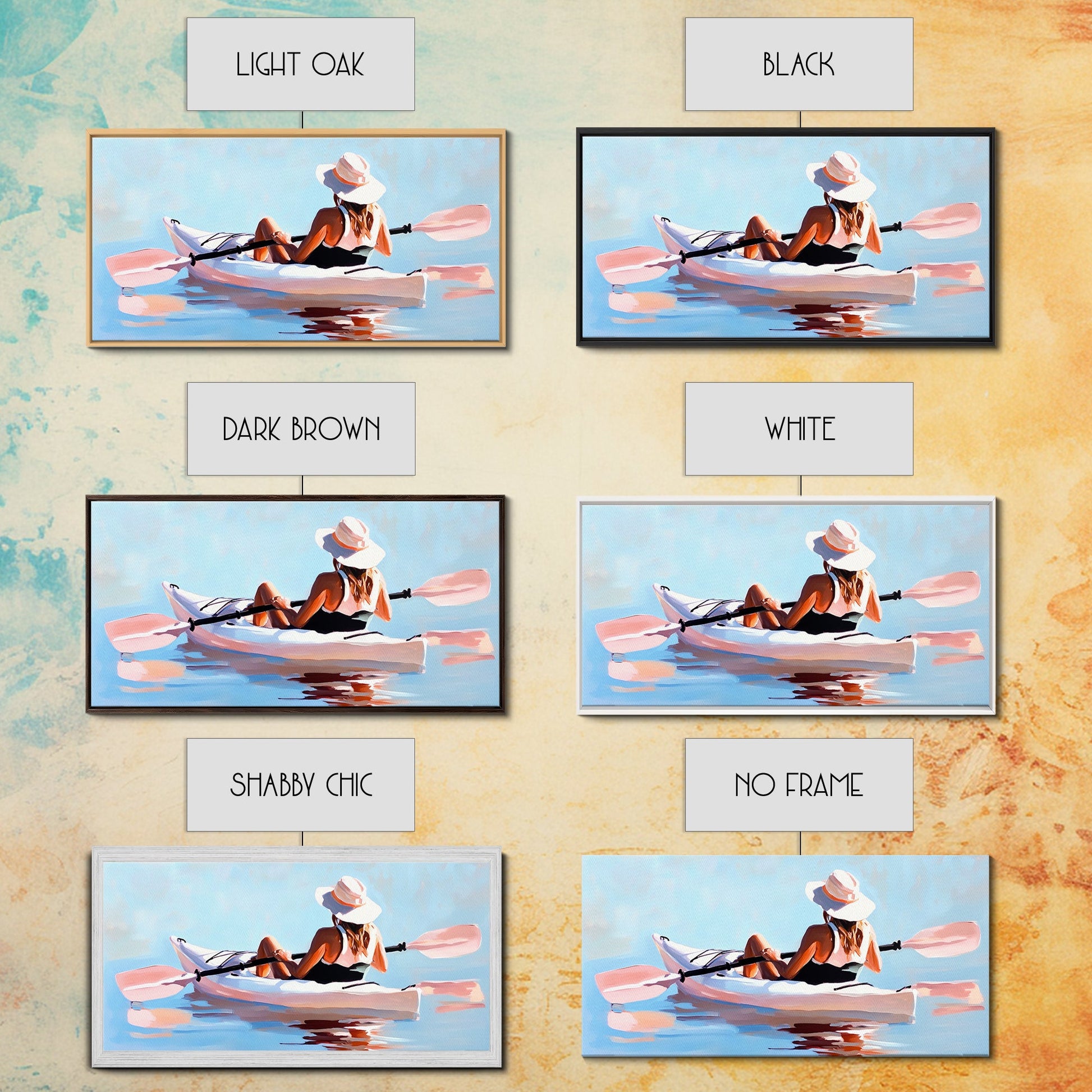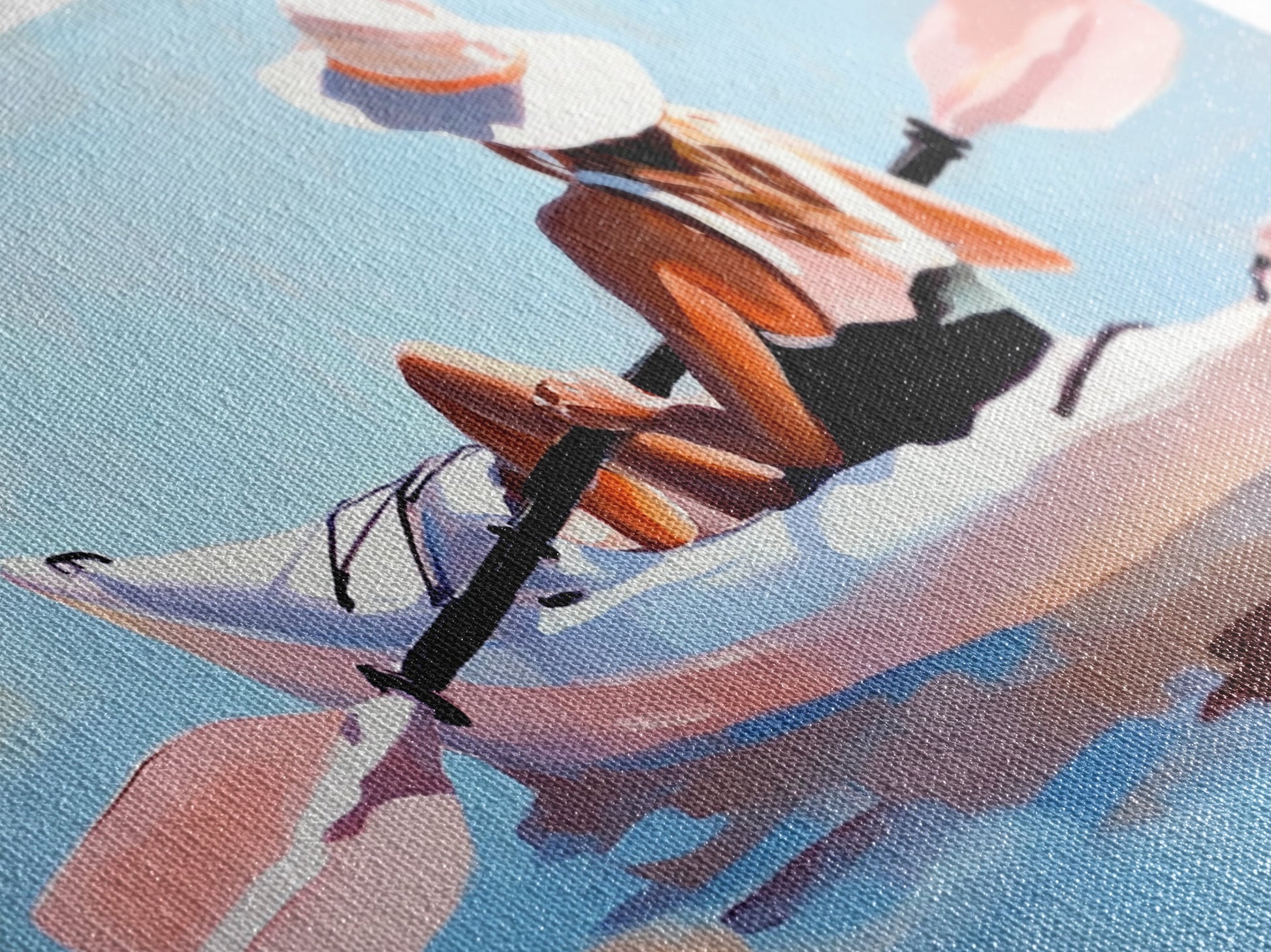 Kayaker, Summer Adventure, Water Sports Art, Canvas Print, Minimalist Wall Decor, Coastal Home Art, Boho Beach Painting, Modern Artwork