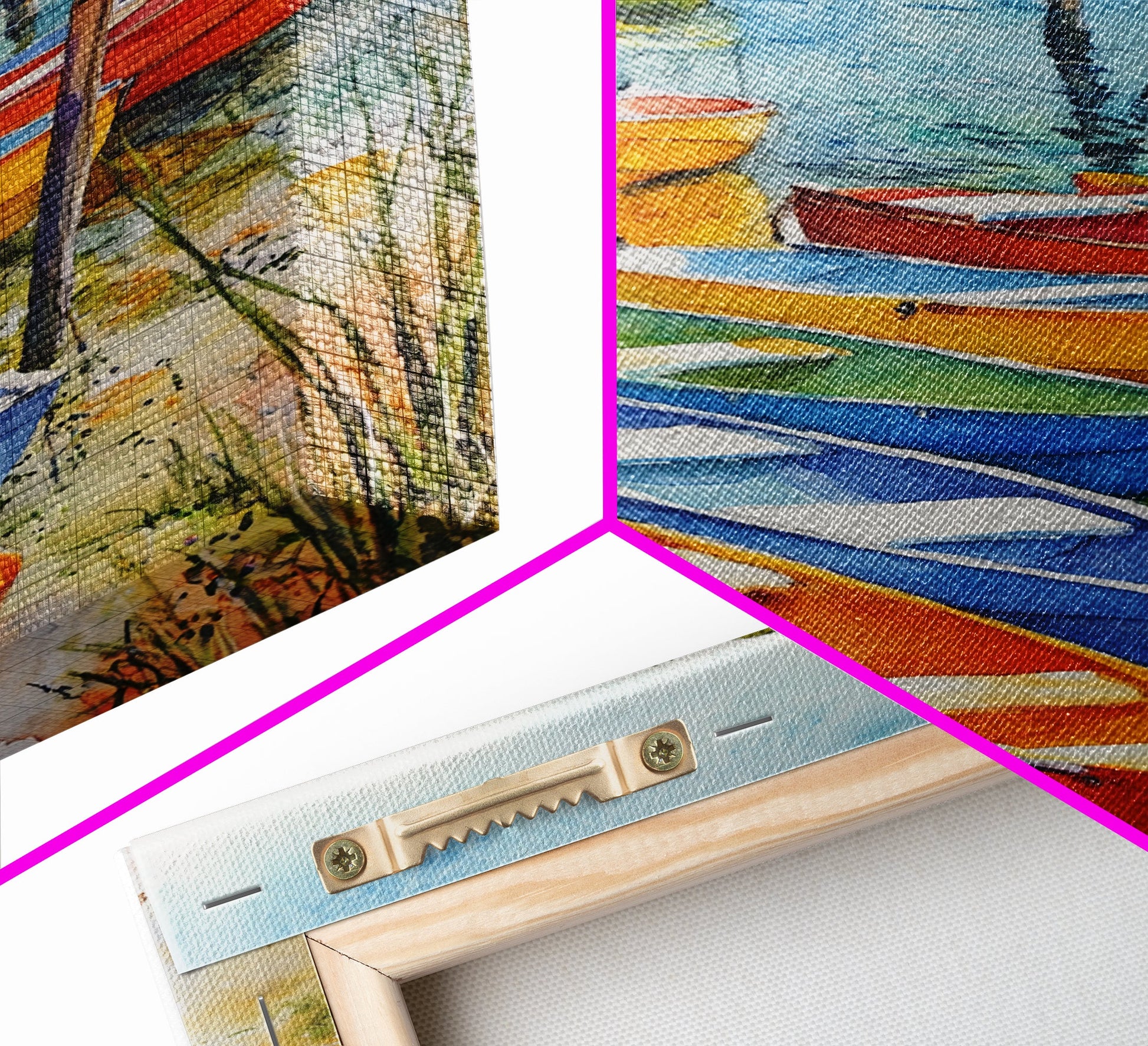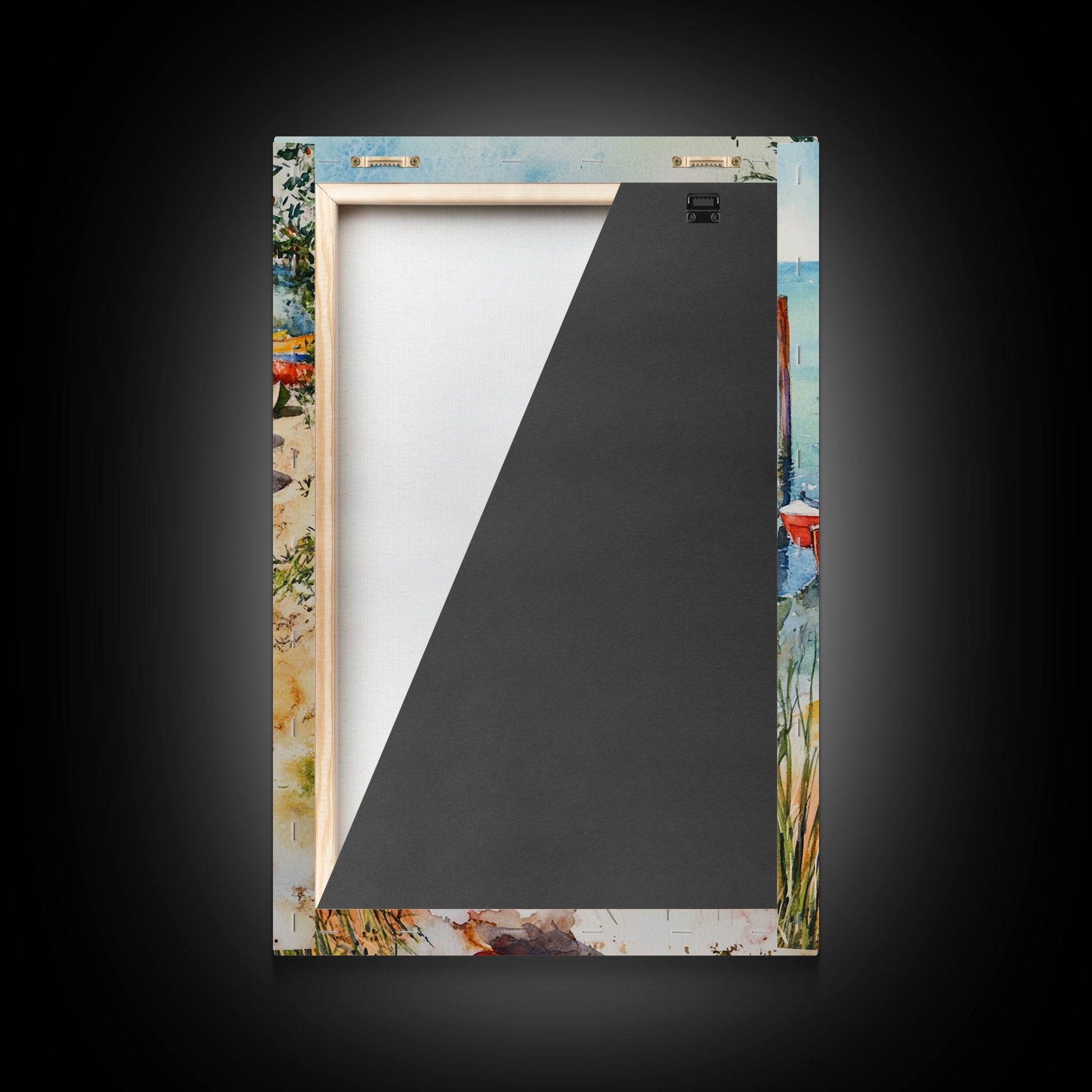 Kayaks On The Ocean Framed Canvas Print, Maine Painting, Coastal Decor, Cute Coastal Wall Art, Preppy Decor, Coastal Landscape Painting