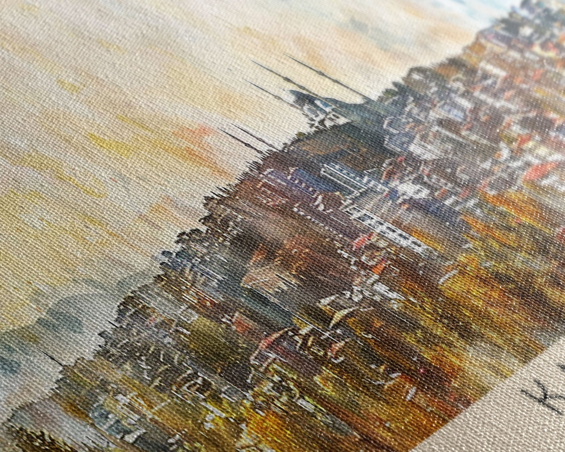 Most of our canvases are made in the USA, with the exception of canvases ordered with the light oak unstained frames, and any large canvases (24x48, 30x60, 16x48 and 20x60) ordered WITH a frame. These are temporarily made in and shipped from Europe, while we try to find a more consistent supplier in the USA.