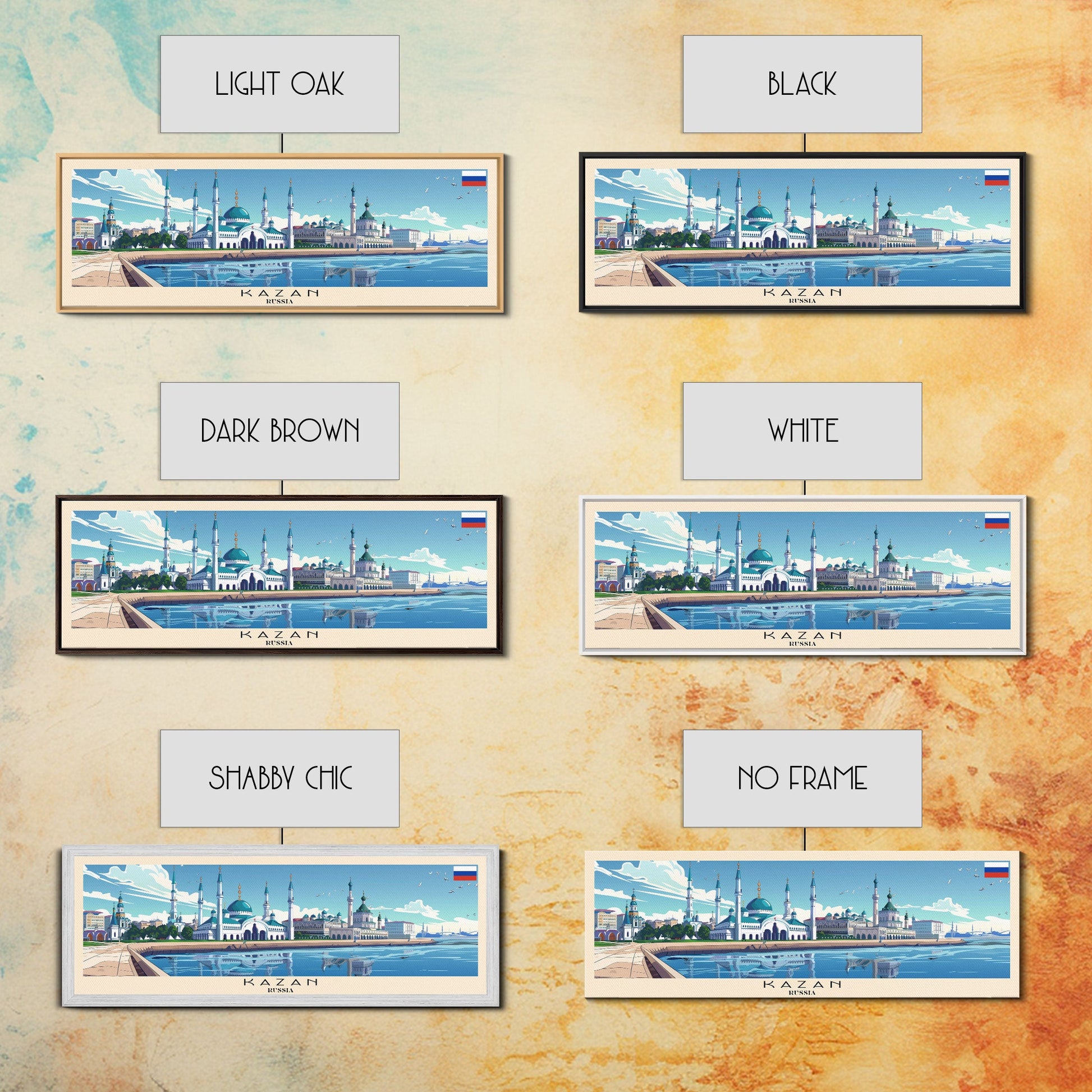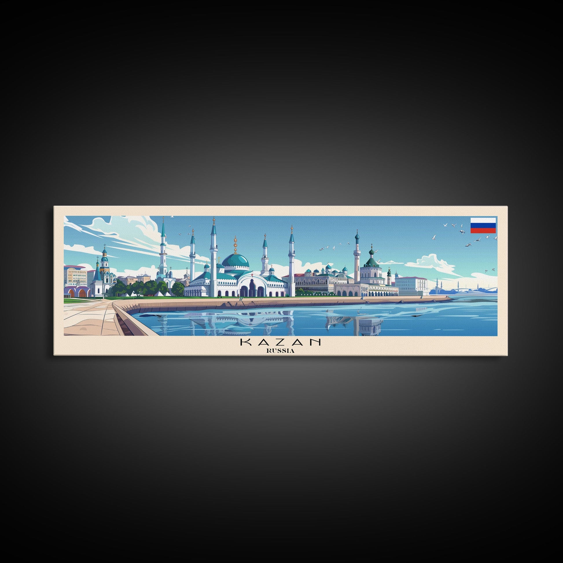 Kazan Russia Panoramic Travel Poster, Framed Canvas Print or Metal Wall Art, Travel Art, Home Decor, Panoramic Painting, Midcentury Art