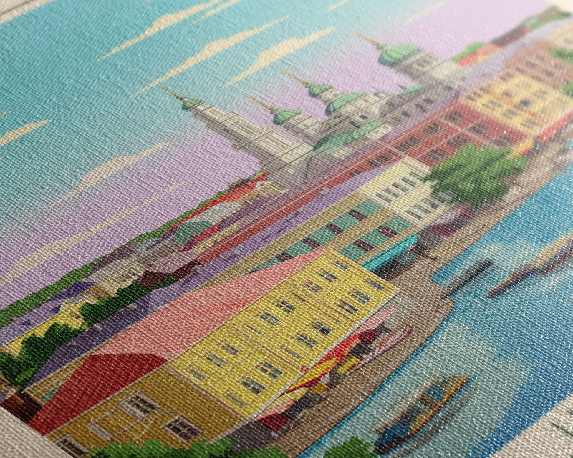 Kazan Russia Travel Poster Framed Canvas Print, Midcentury Modern Art, Pop Art Wall Decor, Scenic Bedroom Art, Office Decoration