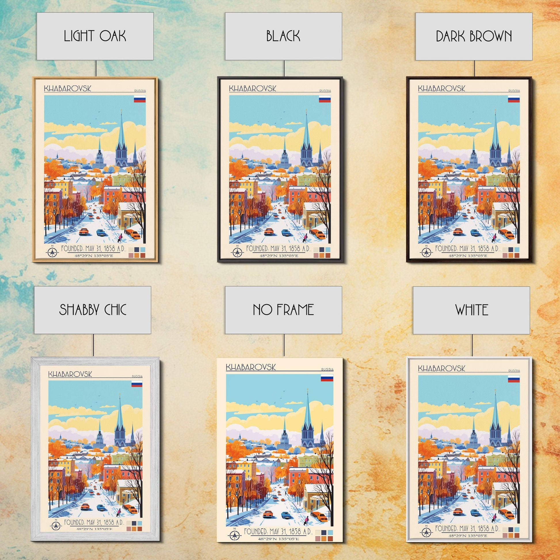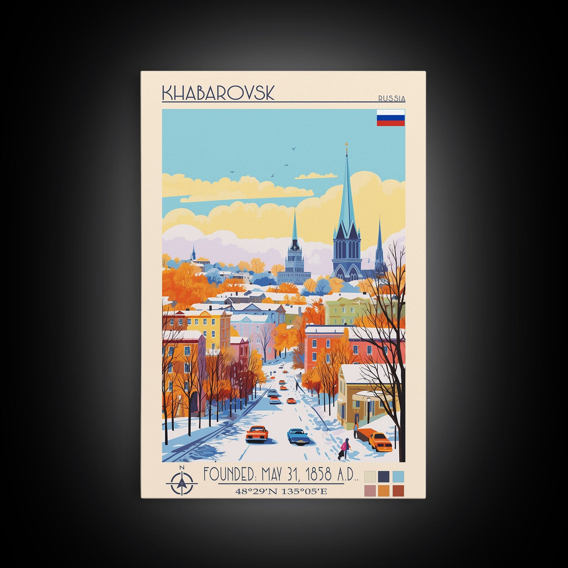 Khabarovsk Russia Travel Poster Framed Canvas Print, Midcentury Modern Art, Pop Art Wall Decor, Home Decor, Vacation Gift, Office Art