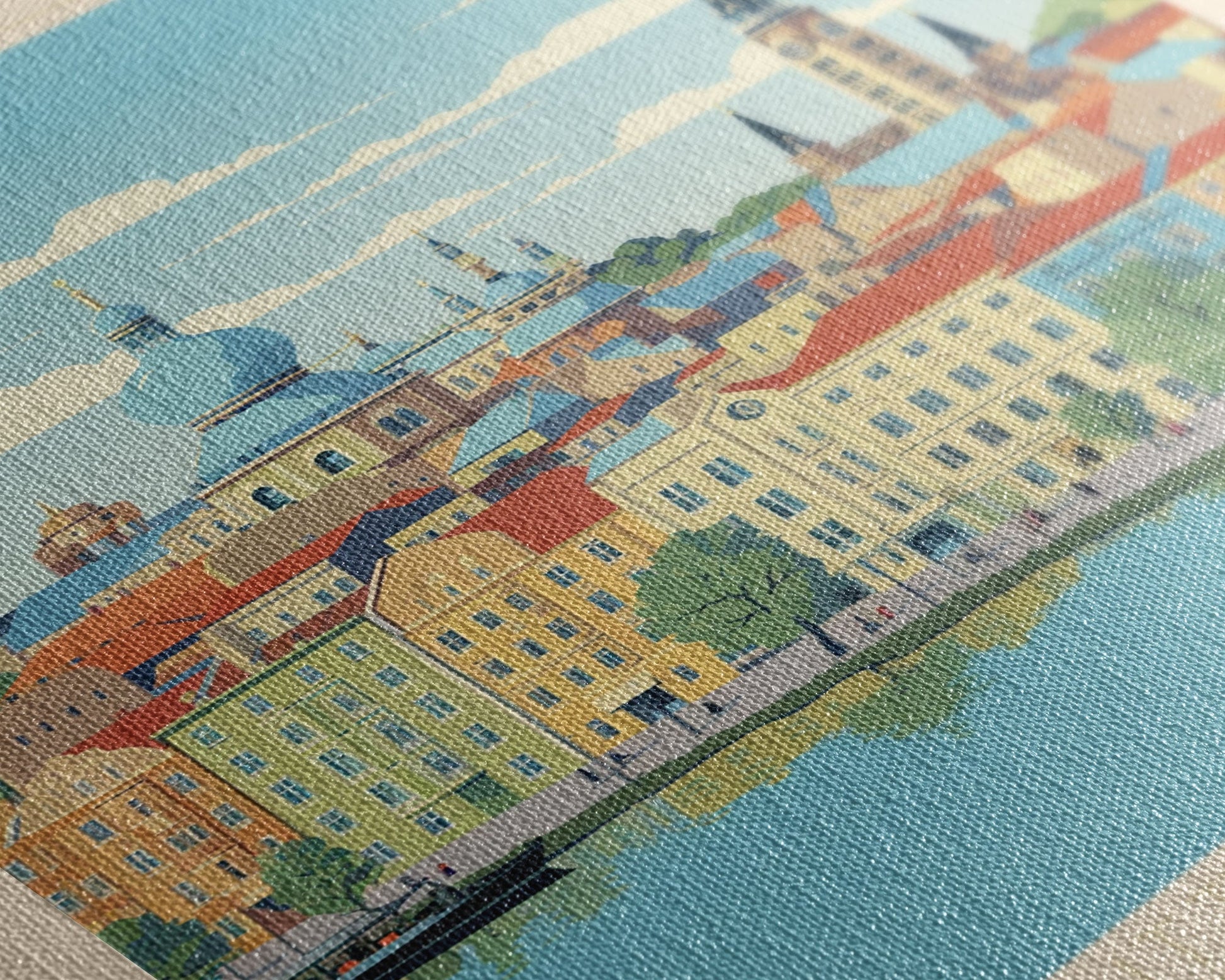 Kharkiv Ukraine Travel Poster Framed Canvas Print, Midcentury Modern Art, Pop Art Wall Decor, Scenic Living Room Art, Bedroom Gift