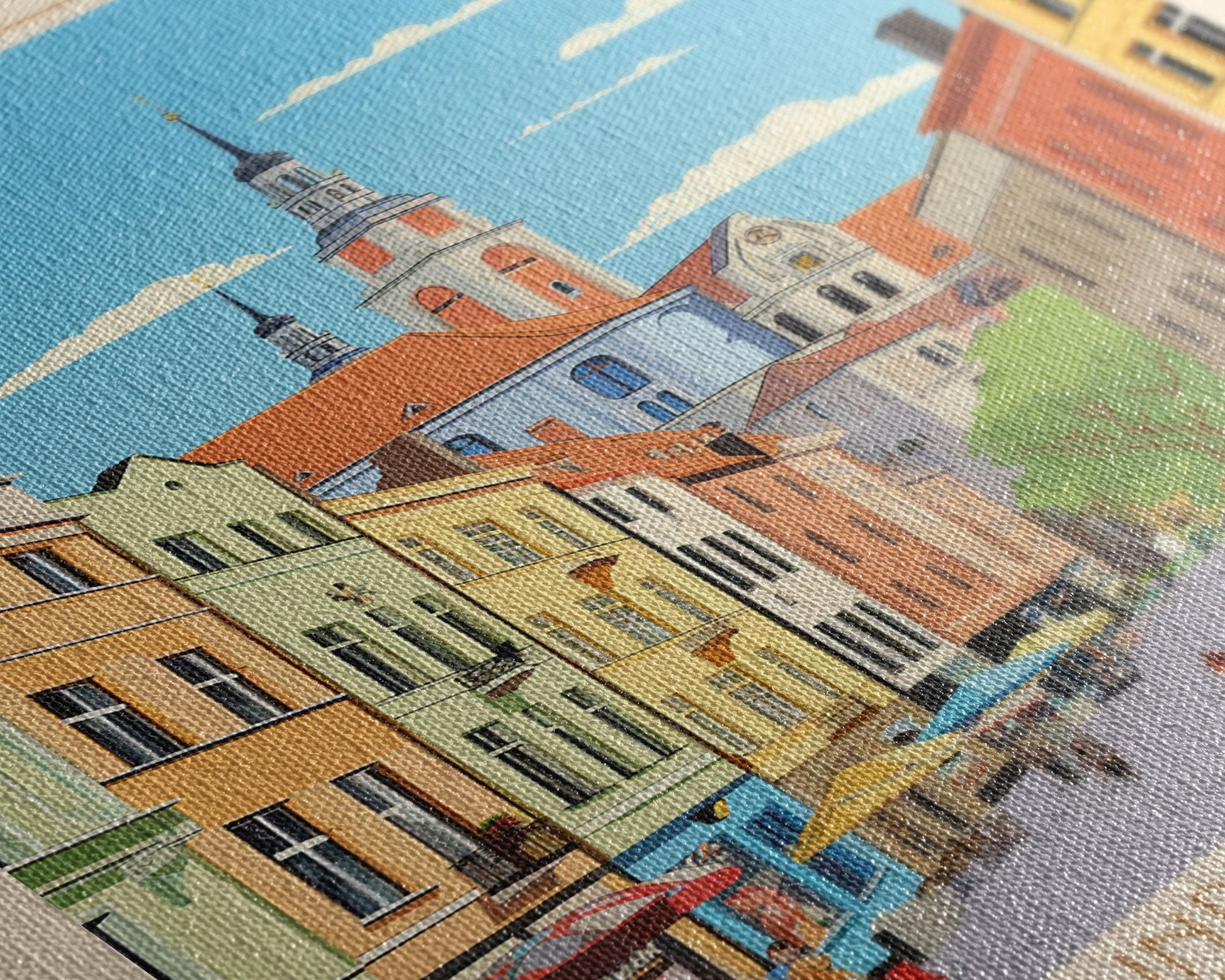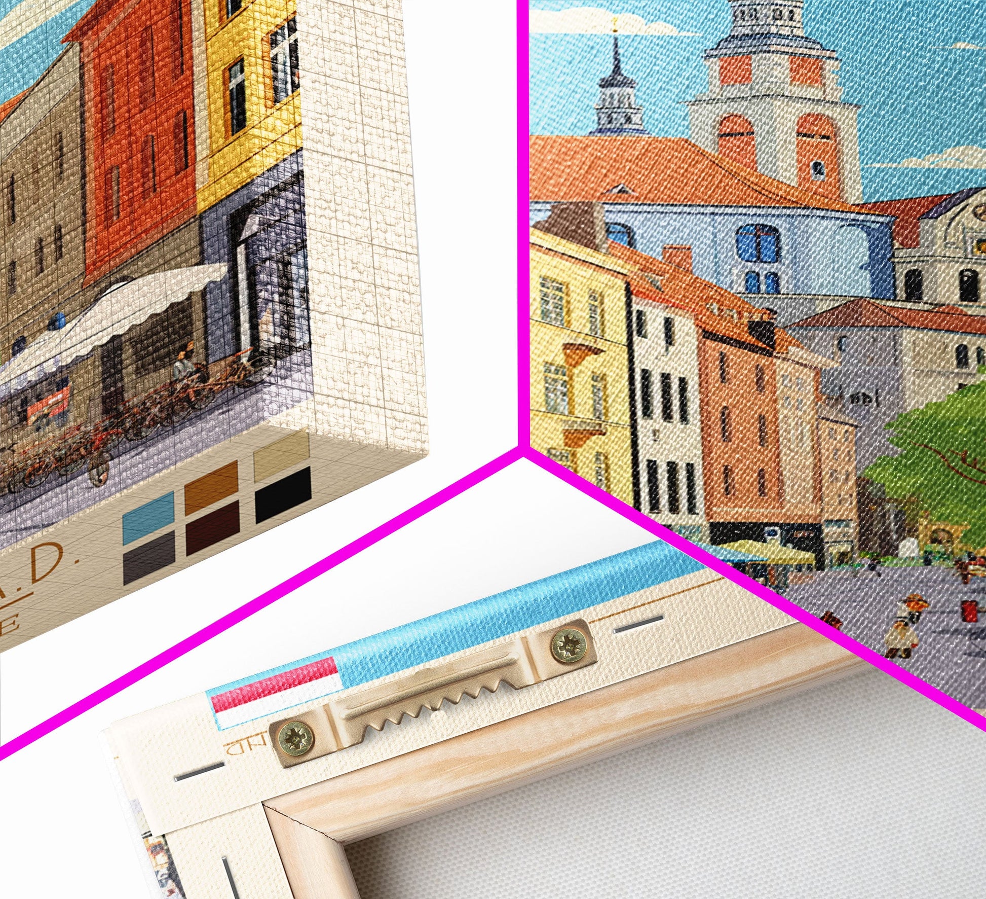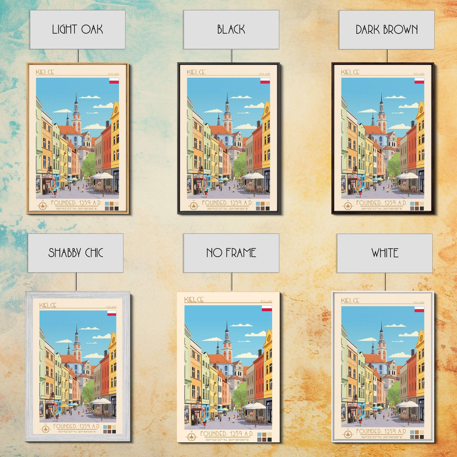 Kielce Poland Travel Poster Framed Canvas Print, Midcentury Modern Art, Pop Art Wall Decor, Scenic Wall Art, Bedroom Decoration