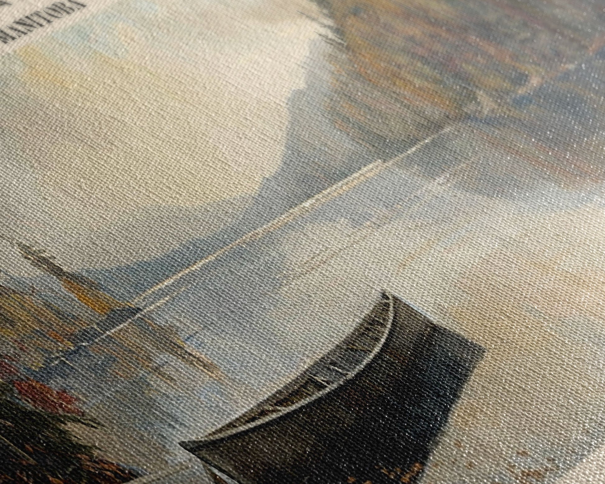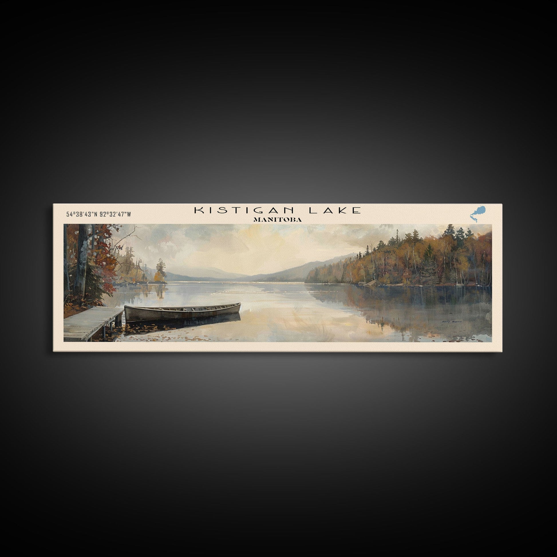 Kistigan Lake Framed Canvas Print, Lake House Decor, Panoramic Wall Art, Travel Poster, Beautiful Lake Painting, Nature Art