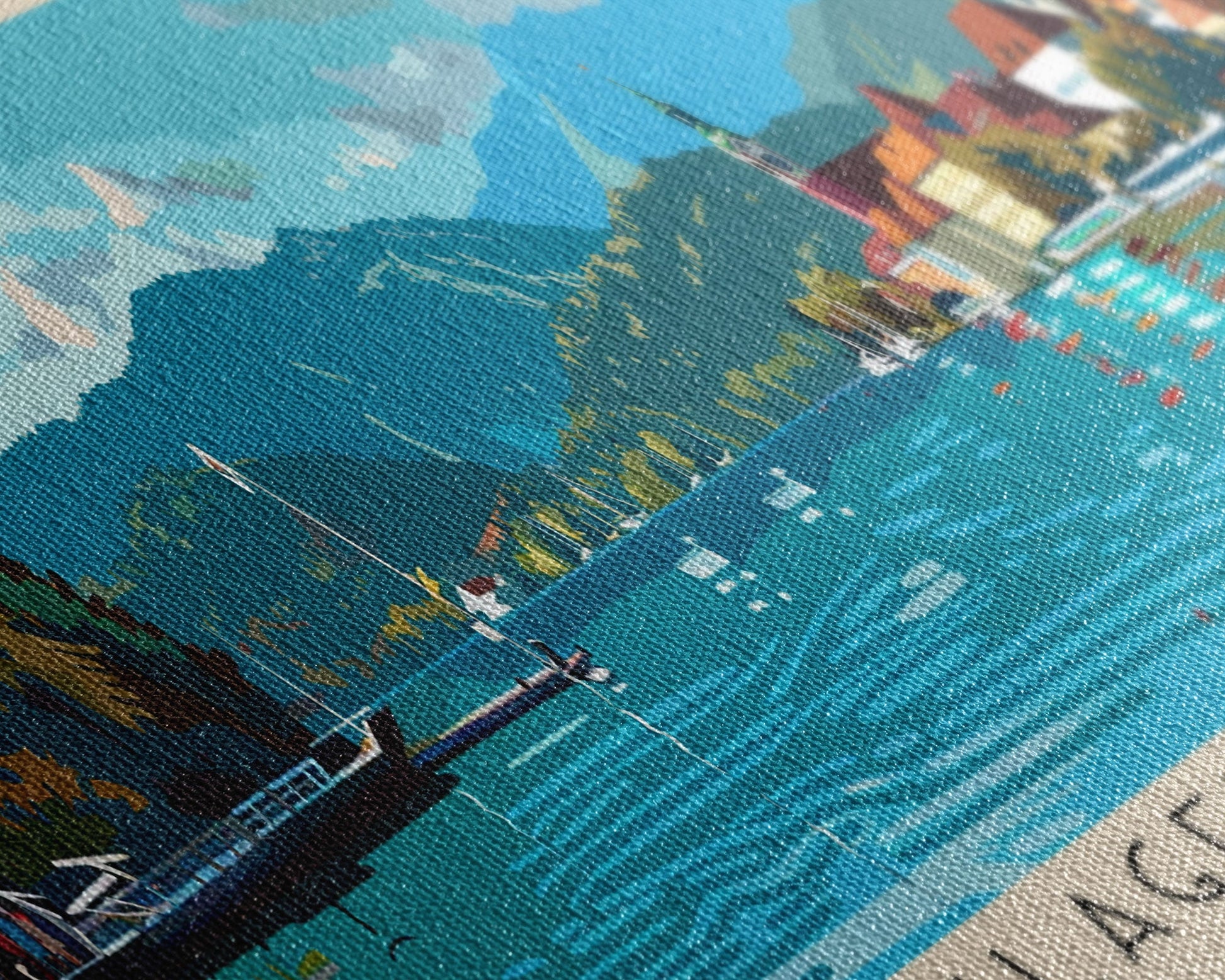 Most of our canvases are made in the USA, with the exception of canvases ordered with the light oak unstained frames, and any large canvases (24x48, 30x60, 16x48 and 20x60) ordered WITH a frame. These are temporarily made in and shipped from Europe, while we try to find a more consistent supplier in the USA.