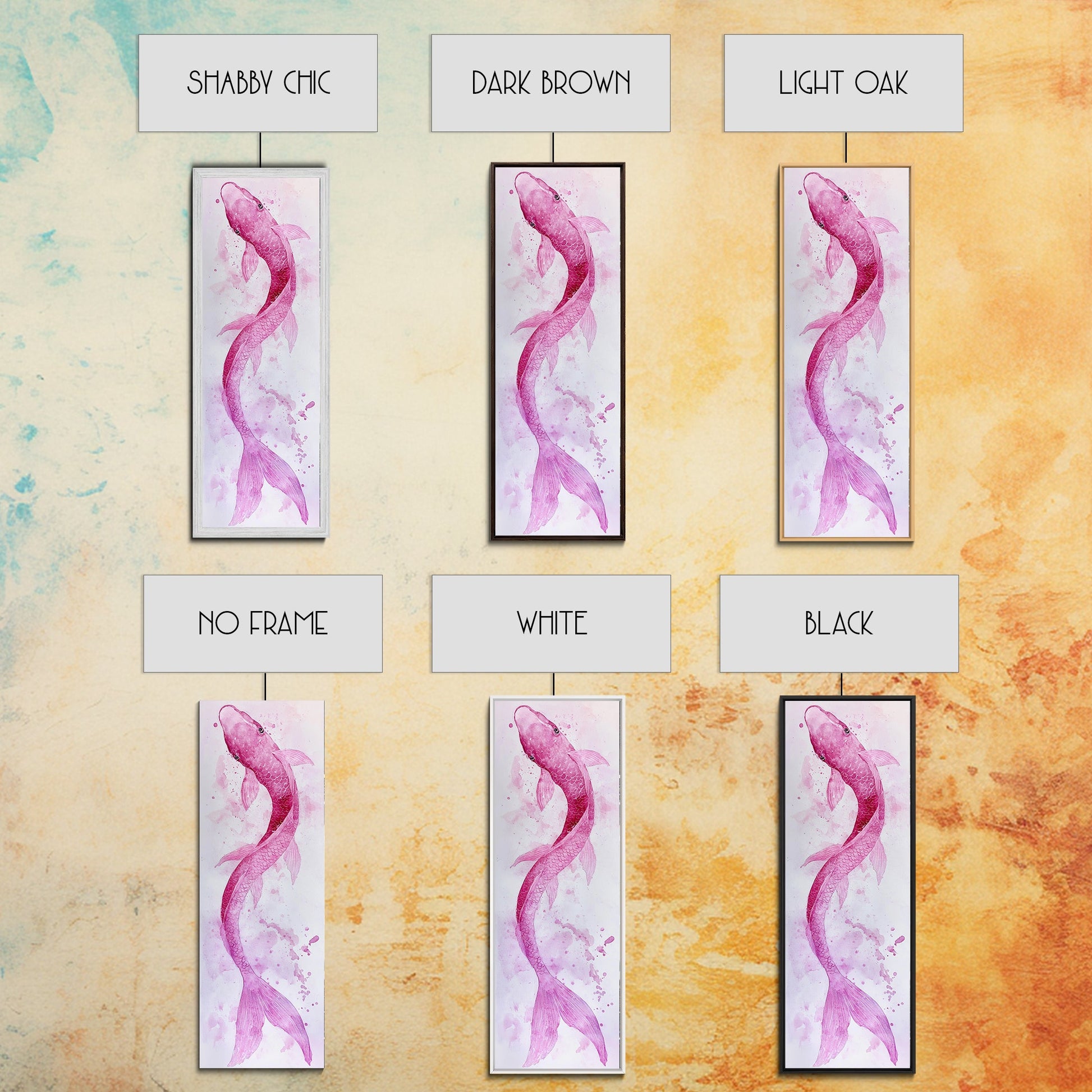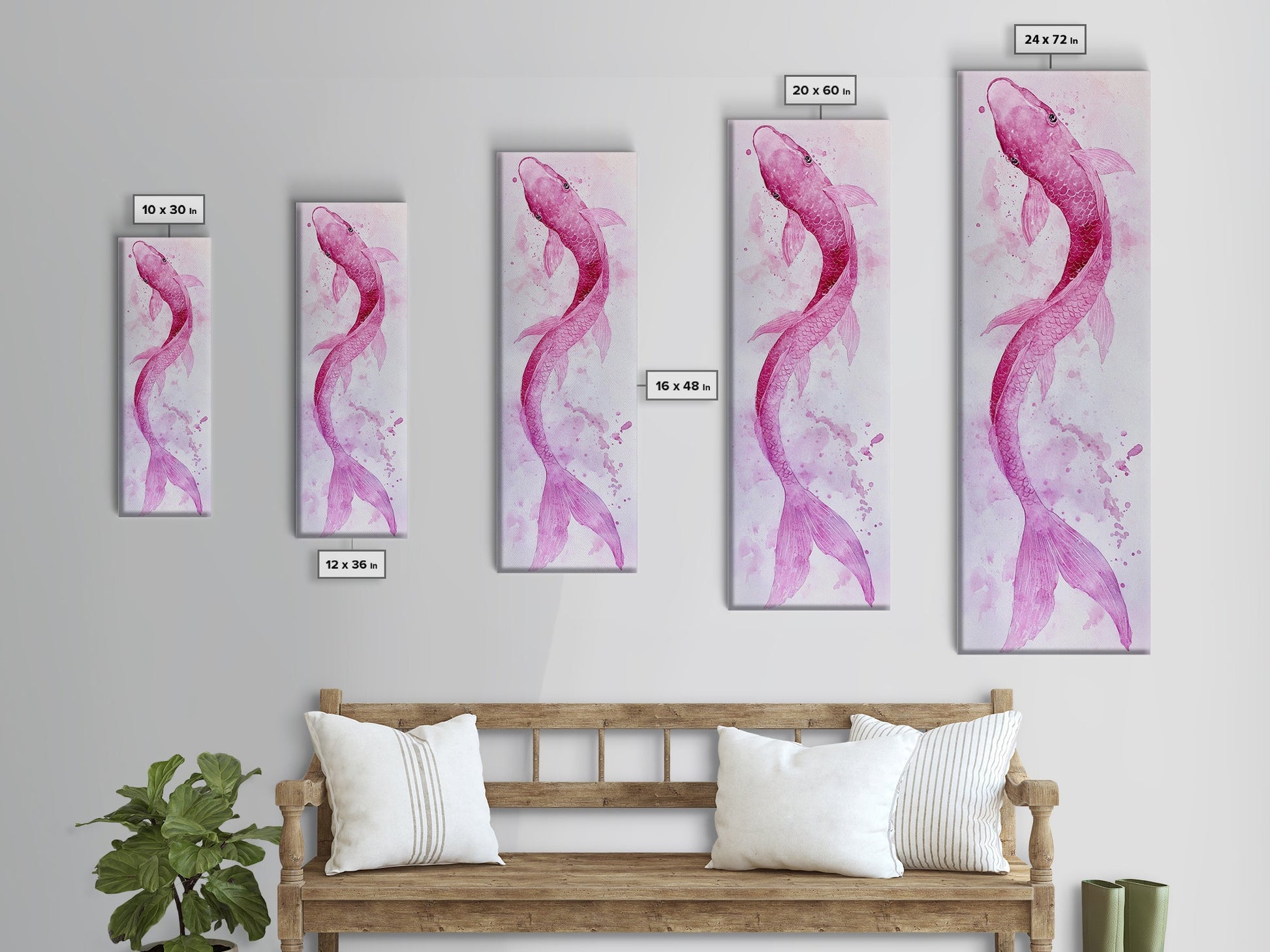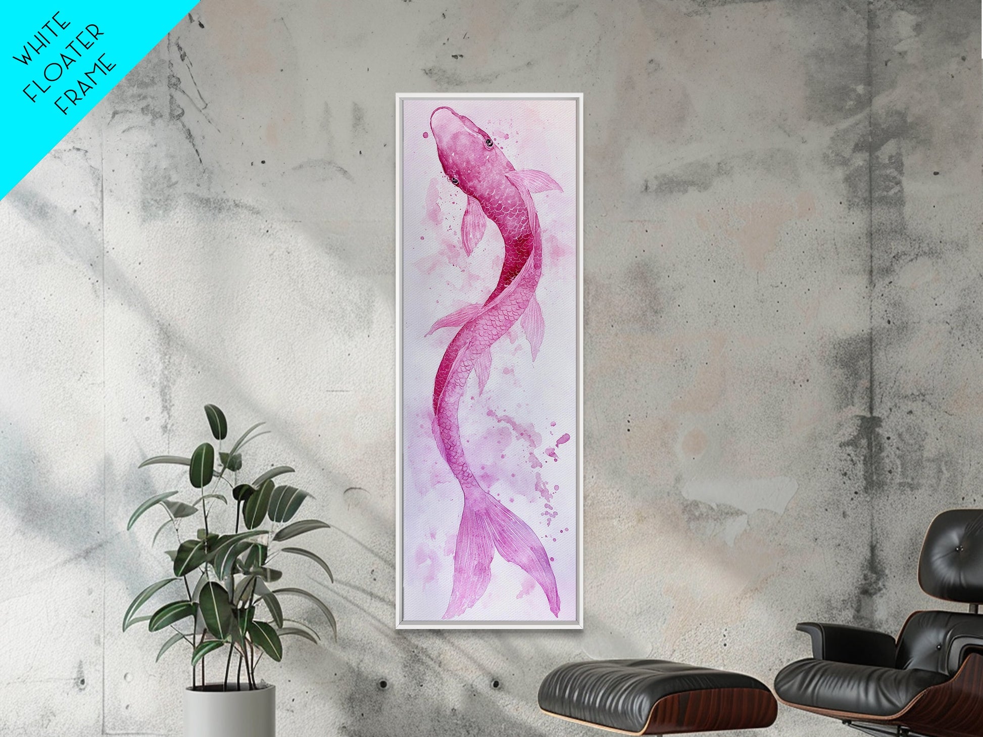 Koi Fish Canvas Print - Pink Whimsical Art, Minimalist Japanese Fish Painting, Skinny Wall Art, Peaceful Above Sofa Artwork