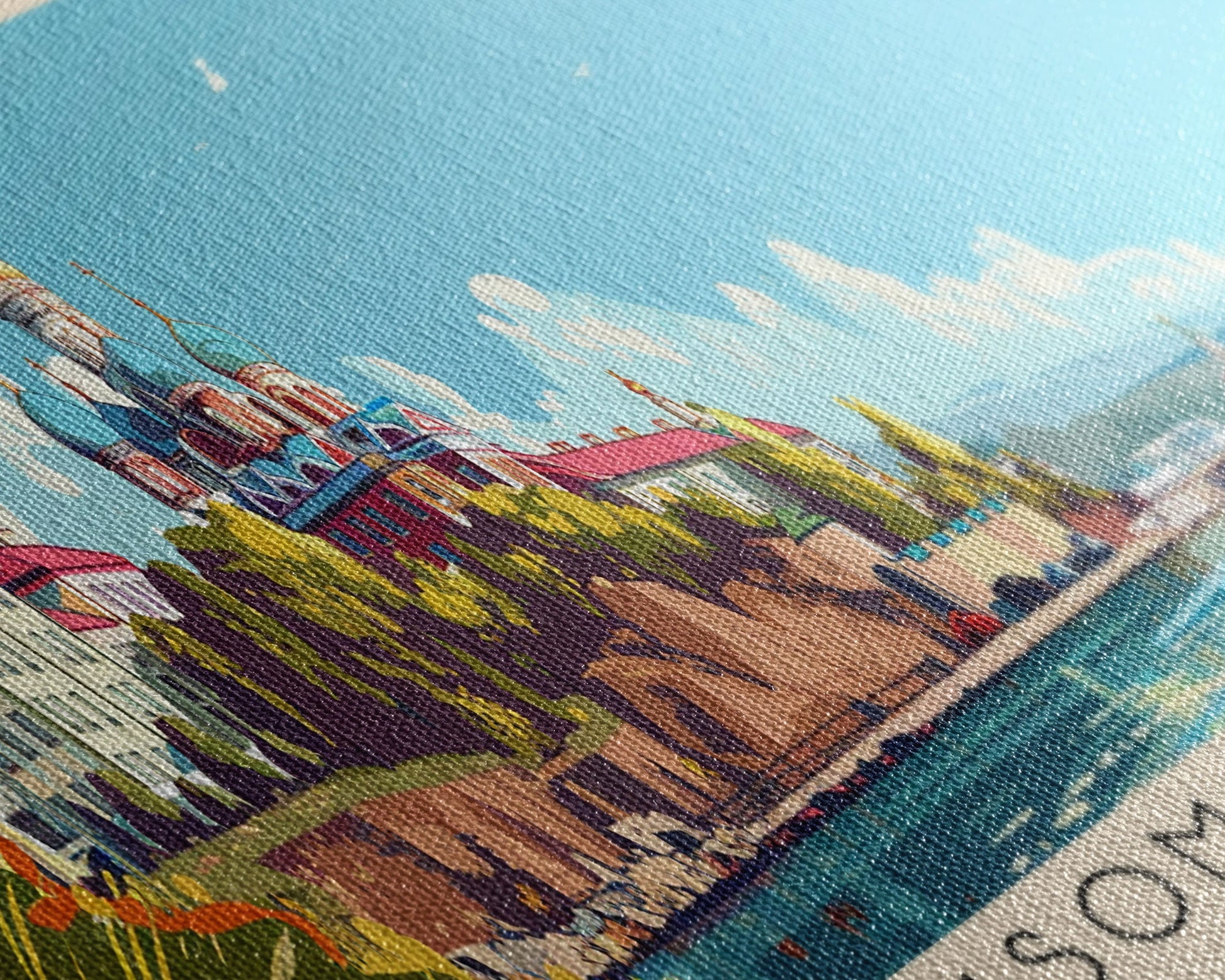 Most of our canvases are made in the USA, with the exception of canvases ordered with the light oak unstained frames, and any large canvases (24x48, 30x60, 16x48 and 20x60) ordered WITH a frame. These are temporarily made in and shipped from Europe, while we try to find a more consistent supplier in the USA.