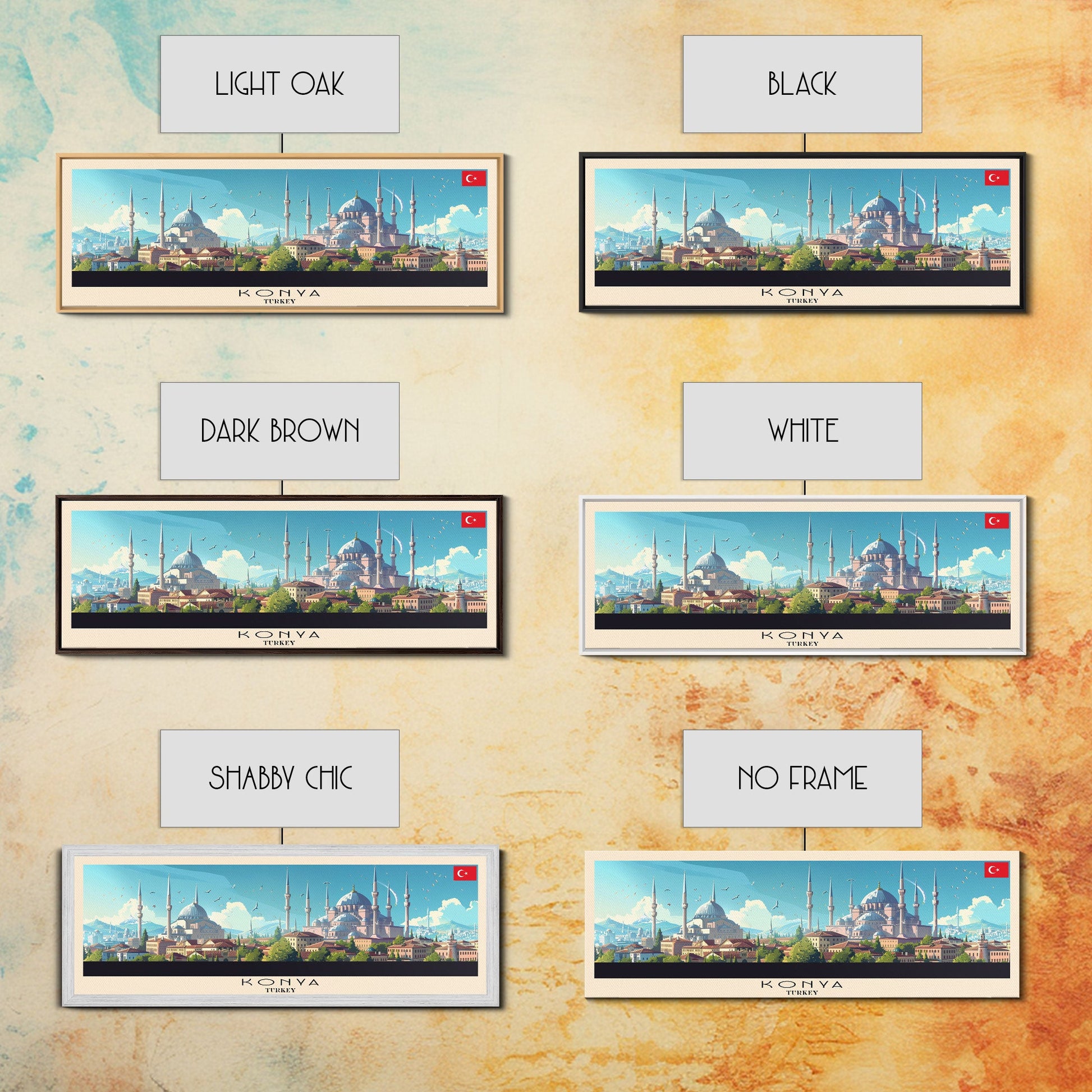 Konya Turkey Panoramic Travel Poster, Framed Canvas Print or Metal Wall Art, Travel Art, Home Decor, Panoramic Painting, Midcentury Art