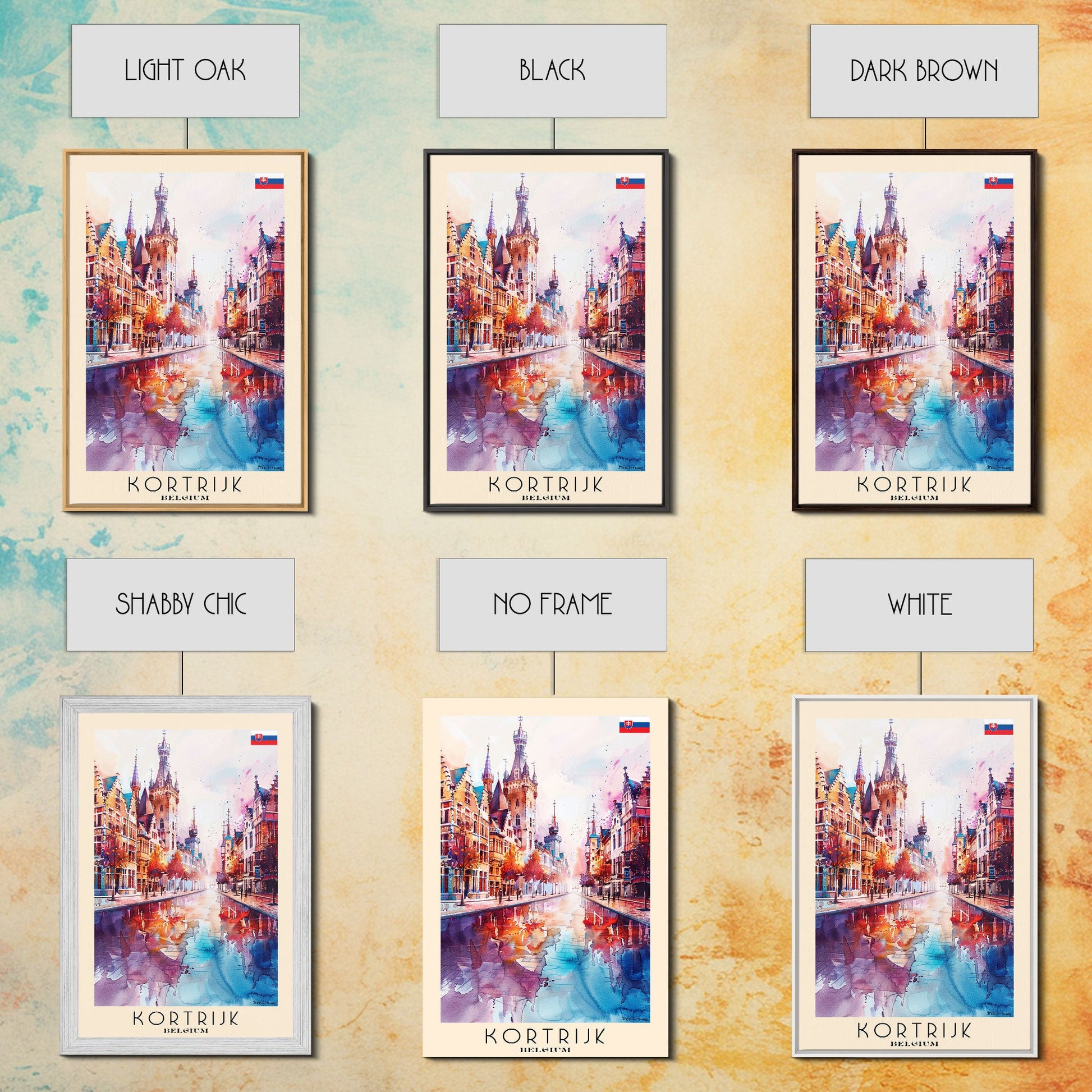 Kortrijk Belgium Charming Cityscape, Framed Canvas Print, Travel Poster, Wall Art, Nursery Decor, Belgian Urban Scene, Charming City Artwork