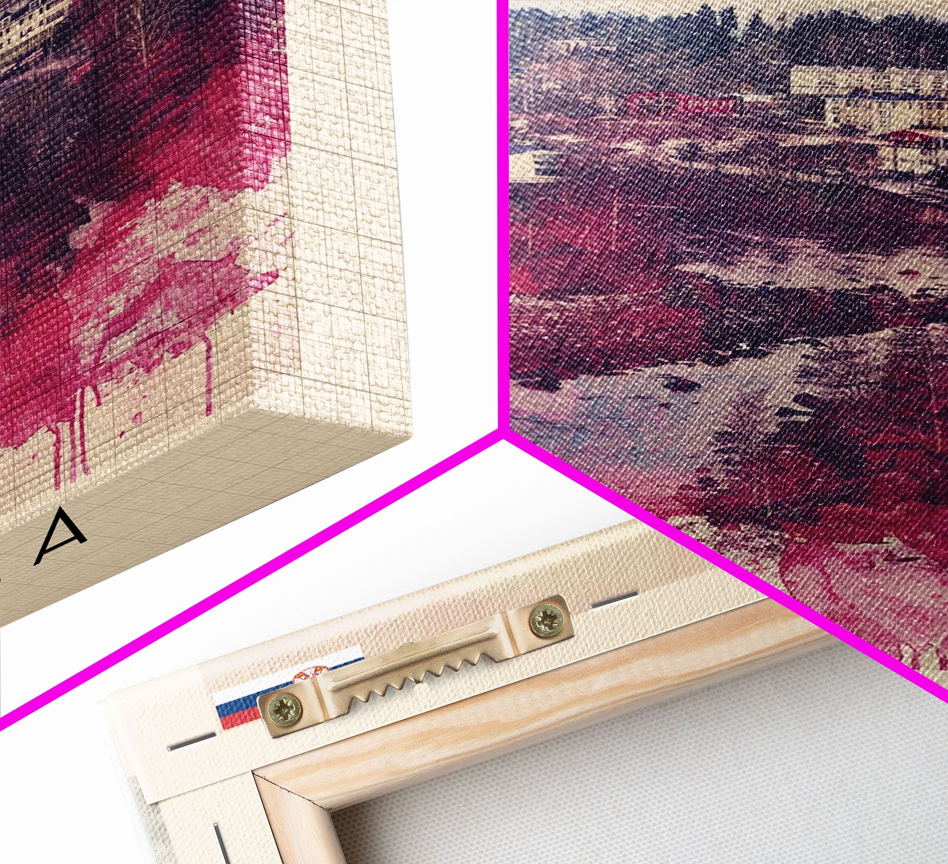 Most of our canvases are made in the USA, with the exception of canvases ordered with the light oak unstained frames, and any large canvases (24x48, 30x60, 16x48 and 20x60) ordered WITH a frame. These are temporarily made in and shipped from Europe, while we try to find a more consistent supplier in the USA.